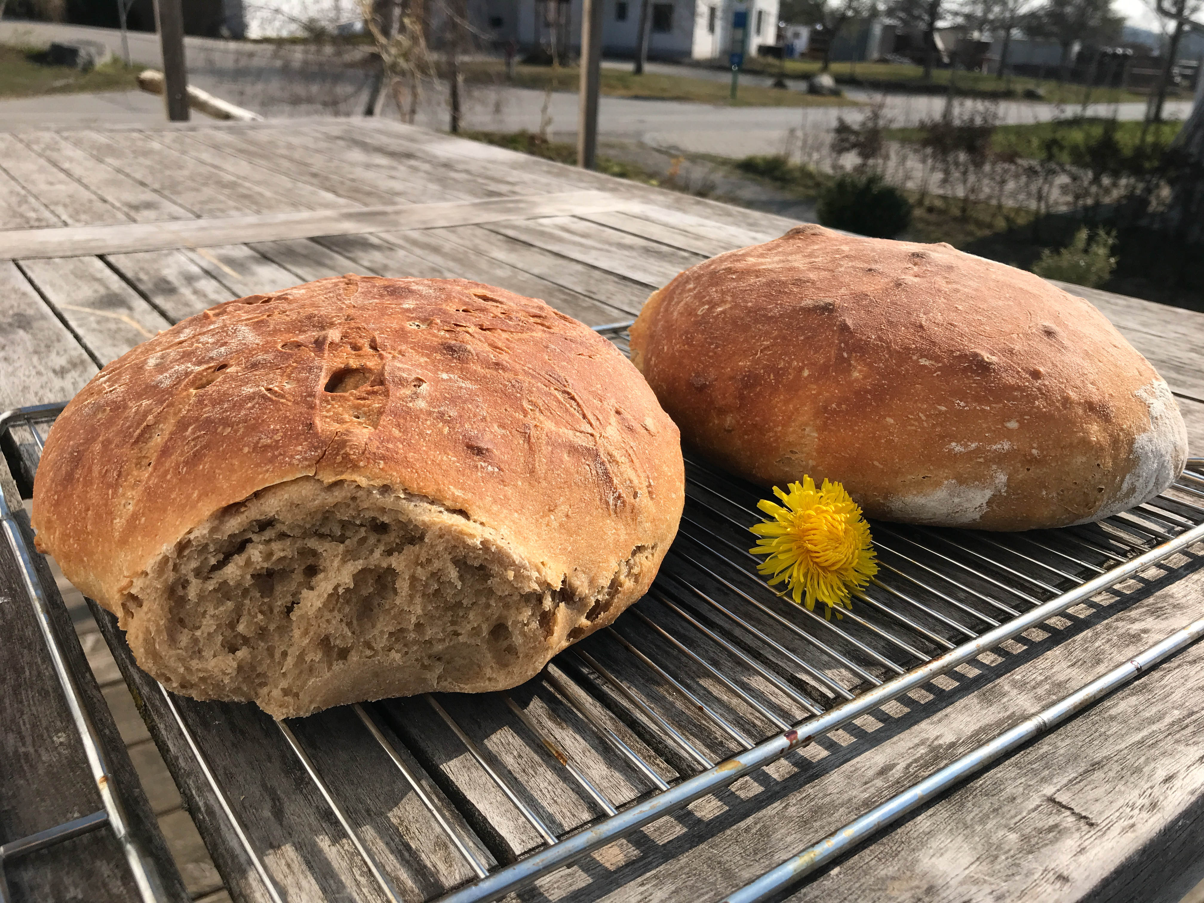 Ich habe den Samstag damit begonnen, zwei Brote rauszubacken, die über Nacht im Kühlschrank gegangen sind. Die Tochter hatte letzte Woche wieder Sauerteig gemacht, der war nun fertig. Die Brote sind knusprig leckere Dinkelbrote. Einen weiteren Teig aus Roggenvollkornmehl habe ich für den Abend angesetzt und tagsüber in der Sonne gehen lassen.