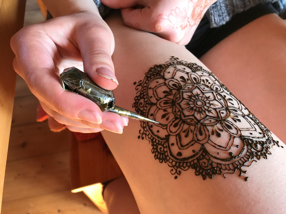 Vor vier Jahren habe ich der Tochter einen gemeinsamen Henna-Kurs geschenkt. Das Thema begeistert sie nach wie vor. Mit zwei Freundinnen zusammen, hat sie sich vor ein paar Tagen neue Henna-Paste bestellt und tobt sich nun kreativ auf ihrer Haut aus.