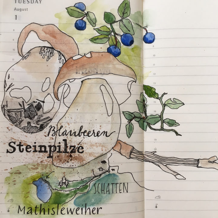 Als es so heiss war, sind wir in kühlere Gefilde geflüchtet und haben einen Spaziergang zum Mathisleweiher gemacht. An einem anderen Tag haben wir Püppchen mit Iris genäht. Gestern waren die großen Kinder im Kino und mit dem Mann Sushi essen. Jeden Tag schiessen wir Bogen. Die Tochter kümmert sich um die täglichen Hunderunden. Ausserdem war sie immer mal wieder in Freiburg, um sich mit FreundInnen zu treffen. Ich habe kein Bedürfnis nach Verabredungen. Die Ruhe und Zurückgezogenheit geniesse ich gerade sehr. Ich war noch kein einziges Mal in der Stadt unten. Vermutlich werde ich meinen Stadtausflug am vorletzten Tag machen und dann alles, was ich erledigen will abklappern: die Ausstellung im Museum für Natur und Mensch, den Spielzeugladen und ein BoojaBooja Eis essen. Mehr gibt mein Konto eh nicht her.