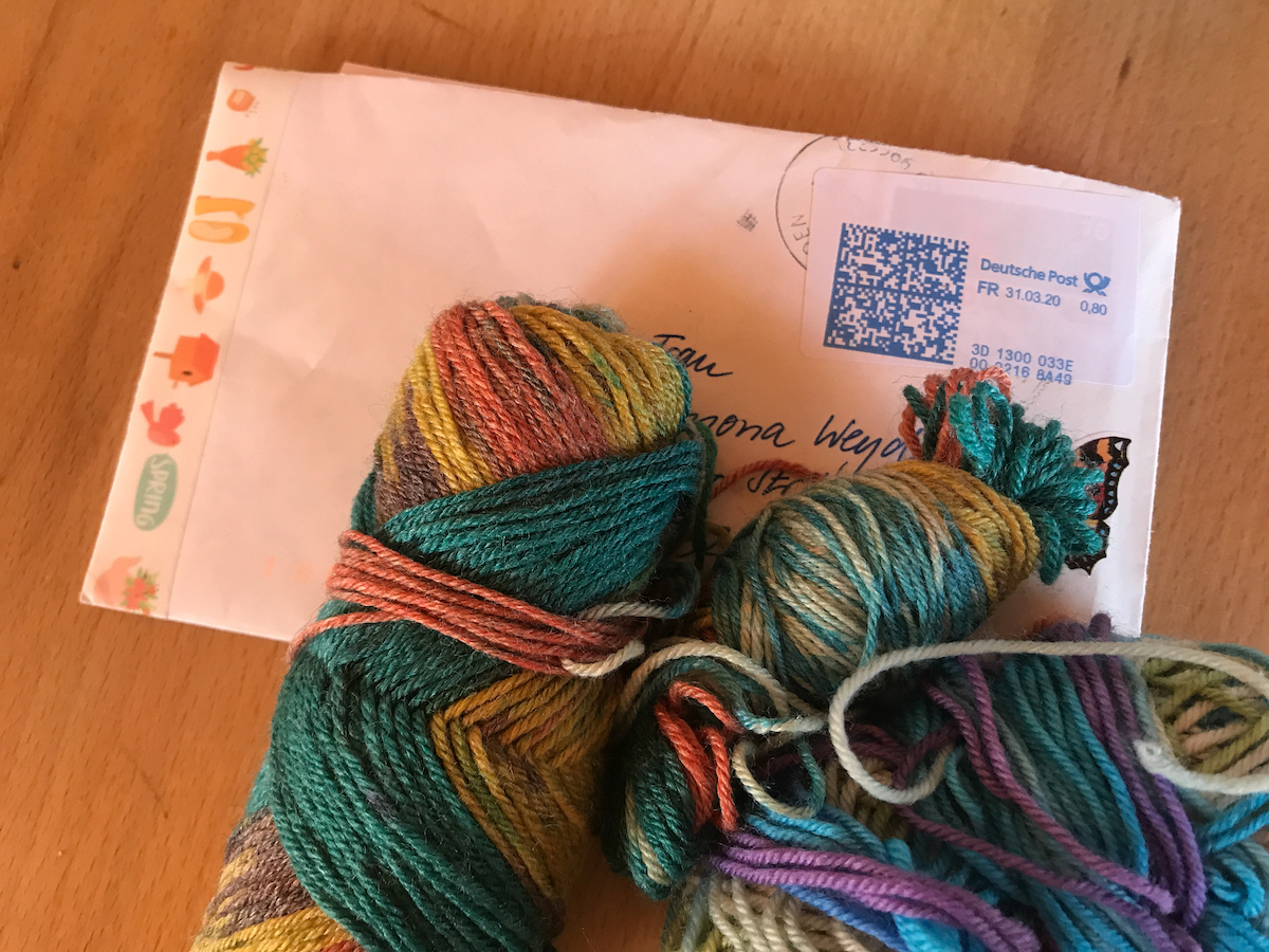 Post von meinen Eltern mit Wollresten, damit ich meine Socken weiterstricken kann. Und ein Brief für den Sterngucker mit Briefpapier aus meiner Kindheit. Kennt’s noch jemand?