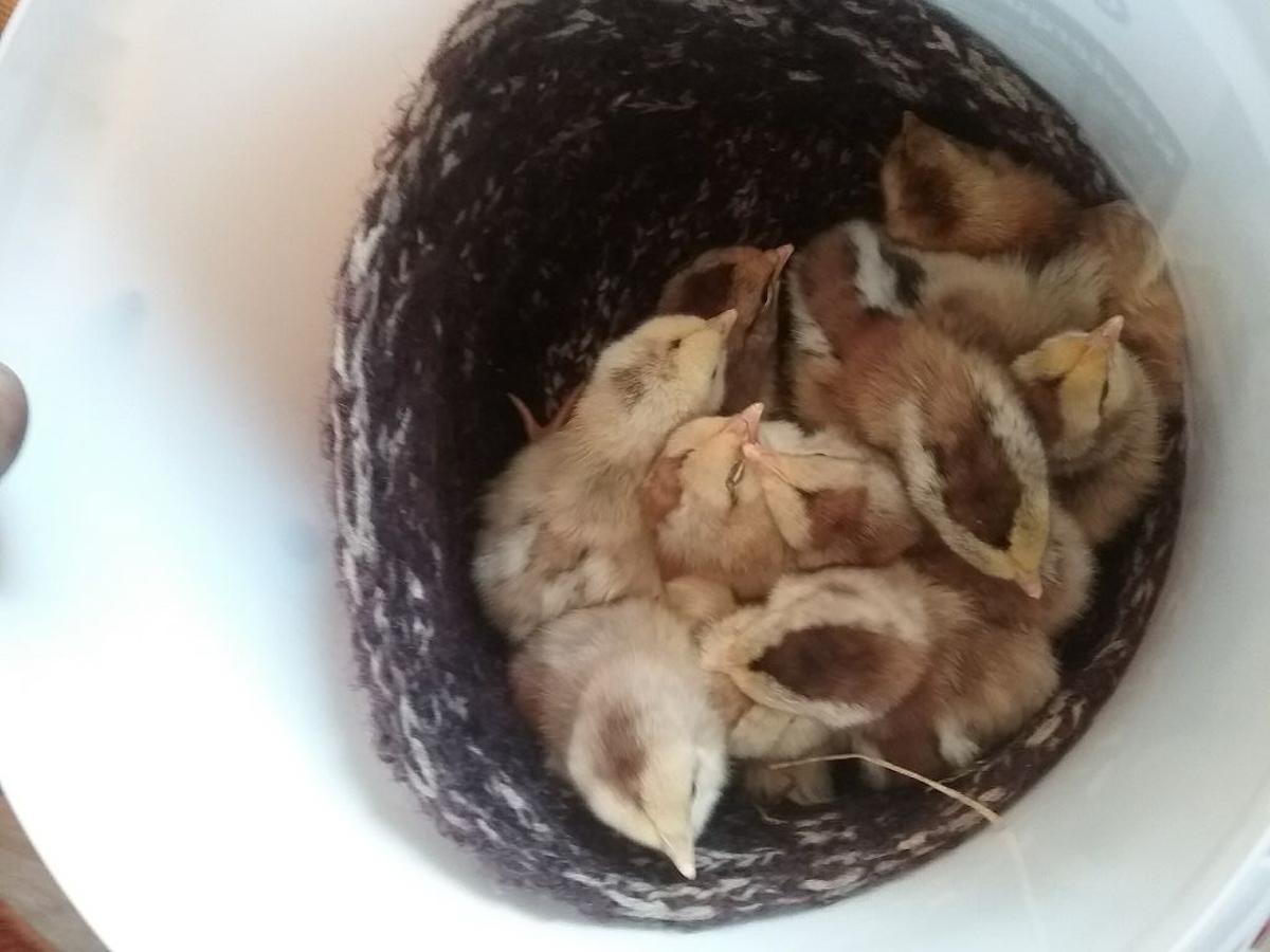 Ausserdem kamen noch zwei weitere Briefe für mich. Und ein Foto der kleinen Osterküken bei meinen Eltern. In Opas Wollmütze.