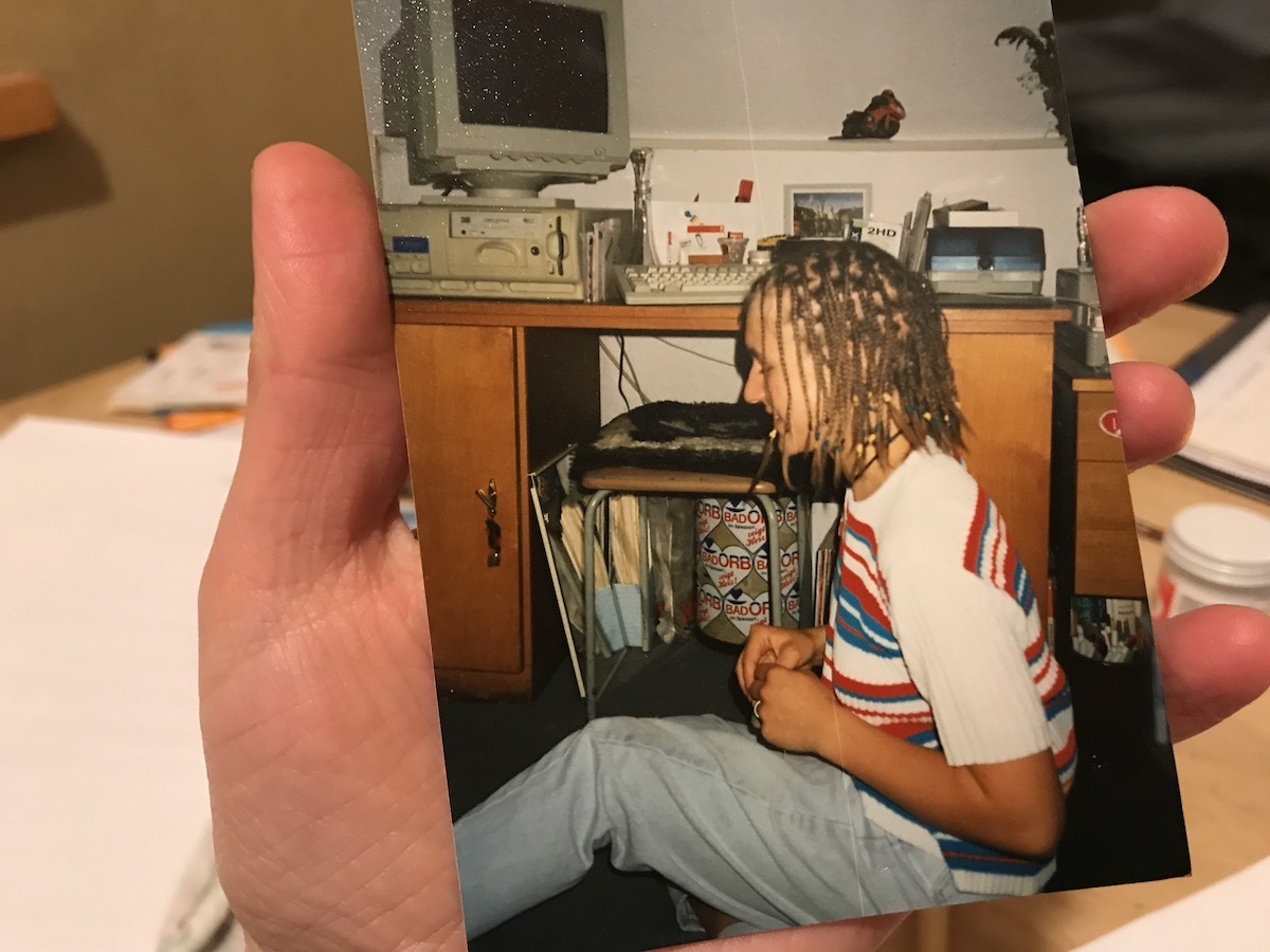 Während die Sendung mit der Maus läuft, habe ich in den letzten Tagen der Tochter kleine Zöpfe geflochten. Das erinnert mich an mich selbst, als ich 18 war und kurz vor dem Abitur stand. Während wir für die Prüfung lernten (Geografie, mündlich) flocht mir eine Freundin lauter kleine Zöpfe. Ein Foto habe ich davon noch gefunden.