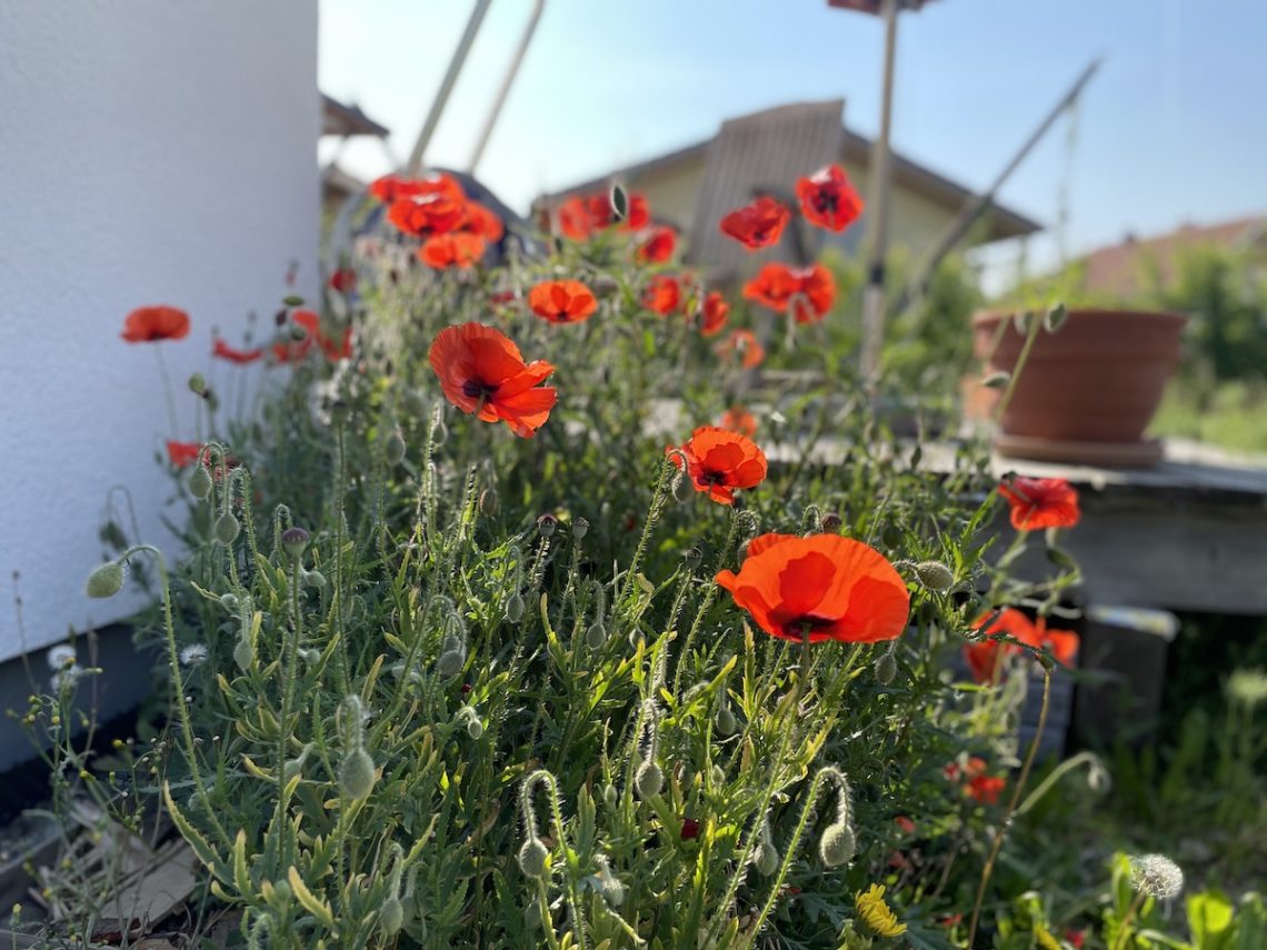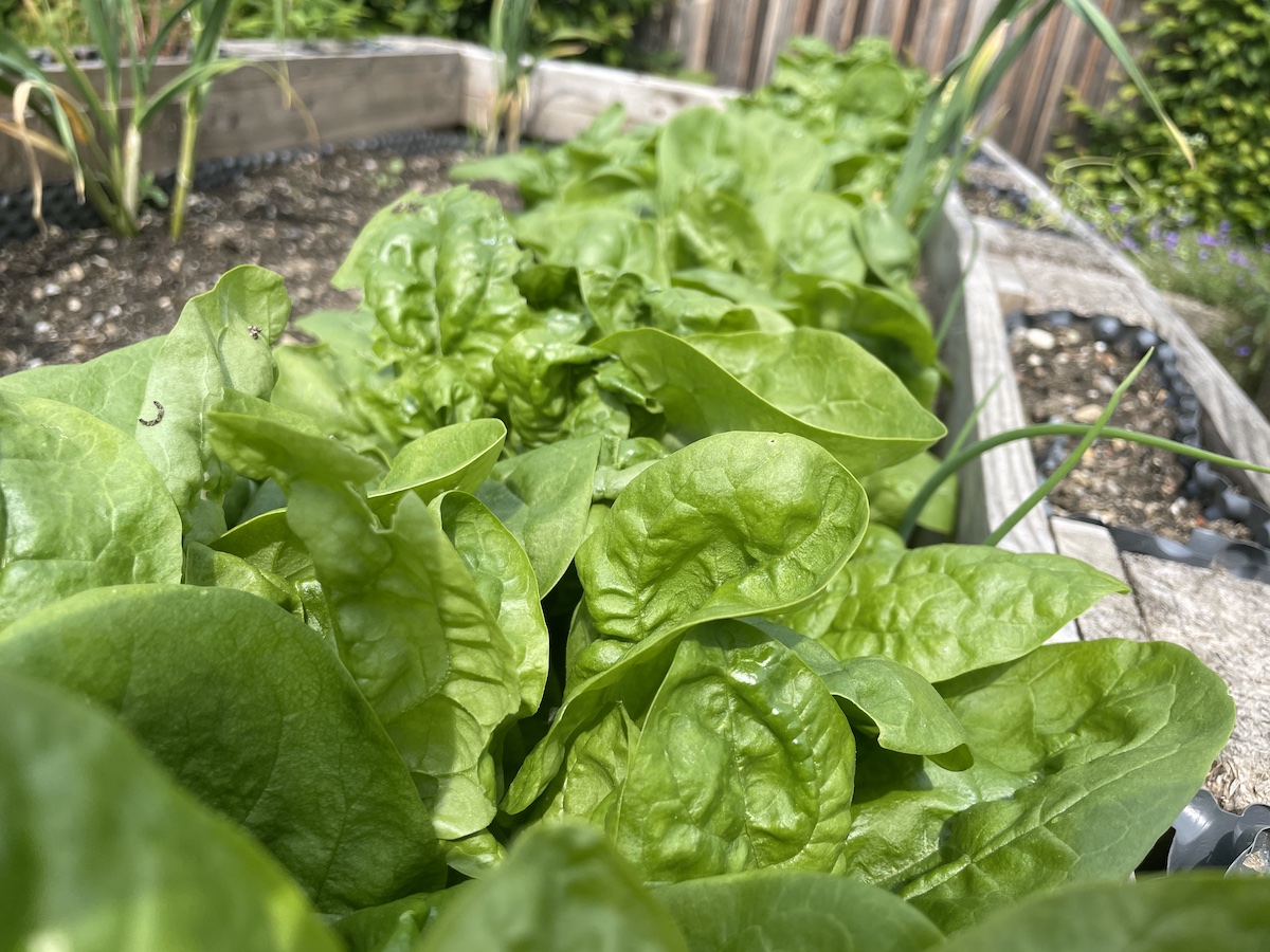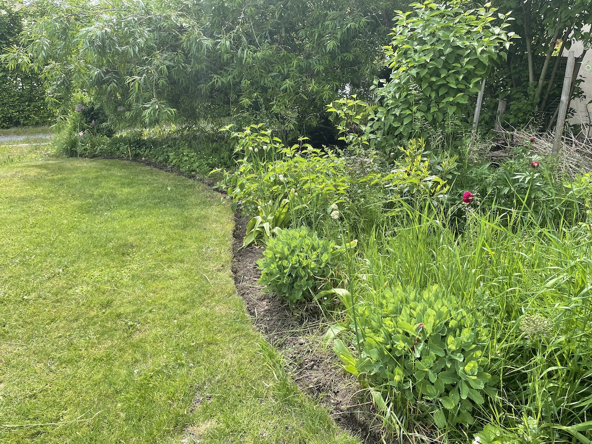 Im Garten ernten wir Spinat aus dem Hochbeet der Tochter, was sie sich letztes Jahr im Frühling gebaut hat. Der ist ganz schön üppig gewachsen. Auch der Rasen muss dauernd gemäht werden, was schon drei Mal der Tochterfreund übernommen hat. Und schau mal, meine schöne Rasenkante. Naja, bisschen Gras und Unkräuter muss ich schon noch aus den Beeten entfernen. Ich hab Freude an dem ganzen Grün.