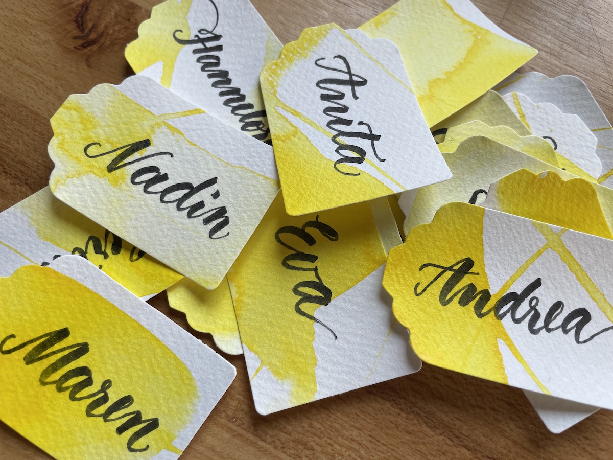 Aber zuerst konzentriere ich mich auf den Sommerskizzenbuch-Kurs. Dafür habe ich heute neben den Videos auch die Namensschildchen für das Materialpaket beschriftet. Das soll richtig toll werden. Mit echter analoger Post, Vorfreude und sinnlichem Eintauchen ins Zeichnen. Ich freu mich schon.