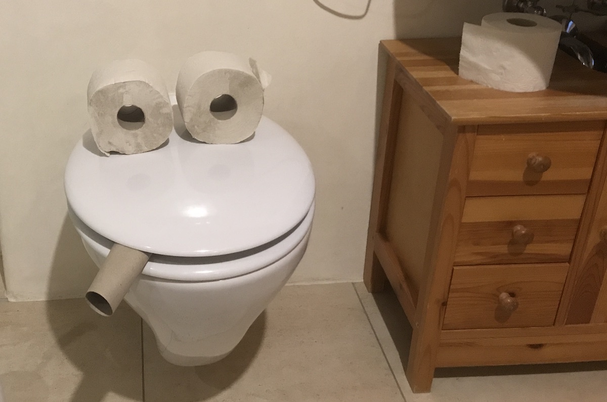 Und noch ein kleines Schmunzelfoto. Der Sterngucker hat das Klo dekoriert…. Hat er in irgendeinem Video gesehen und sich inspiriert gefühlt. Hihi.