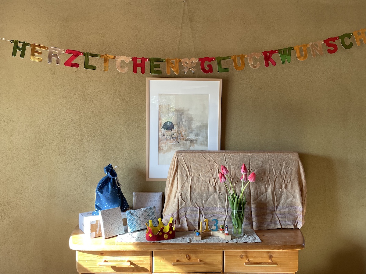Neben den Träumen läuft der Alltag. Am Wochenende hatte der Wolf Geburtstag. Er ist nun schon 13! Ich habe mich an die Schwangerschaft mit ihm erinnert. Das war eine intensive und herausfordernde Lebensphase. Allein mit der Tochter in Hamburg, sie frisch eingeschult an der Neuen Schule Hamburg, meine erste Ehe in Scheidung, ich mitten an meinem Diplom. Einmal, ich wollte gerade Geld holen, bin ich vor dem Geldautomaten in Ohnmacht gefallen. Ist mir noch nie passiert!