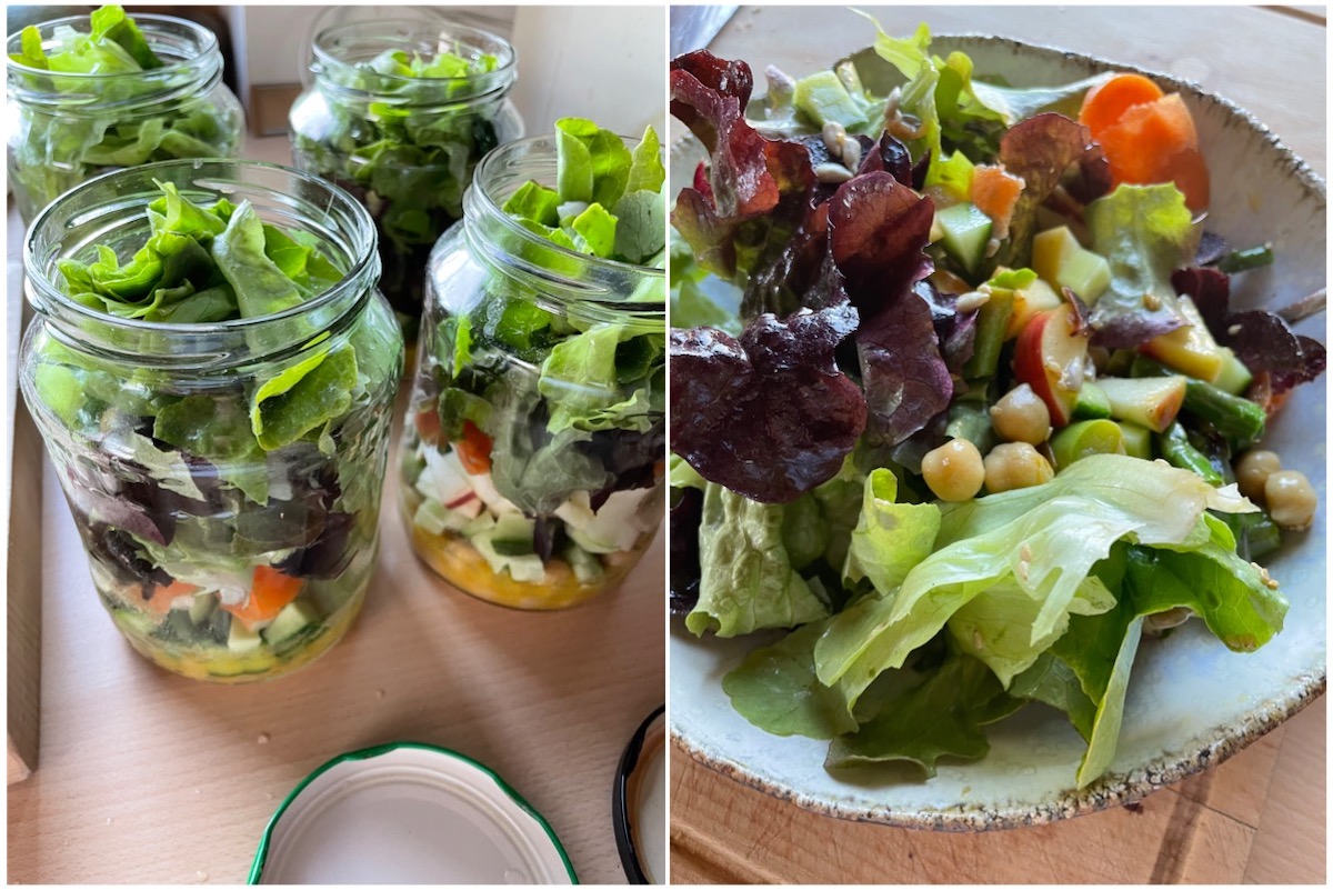 Ich habe begonnen, früh aufzustehen und geniesse die Alleinzeit am Morgen. Der grünende Garten, das Fitnessprogramm, das bunte Essen, Spargel! Ich habe angefangen, wieder Salatgläser vorzubereiten. So muss ich nur ein Glas in eine Schüssel leeren und habe eine leckere gesunde Mahlzeit. Lesezeit, herzliche Kontakte, berufliche Anfragen als Referentin, ein Freundindate (gemeinsam singen!) und überhaupt Herzenskontakt, Musik machen, Muttertagsblumen von der Tochter.