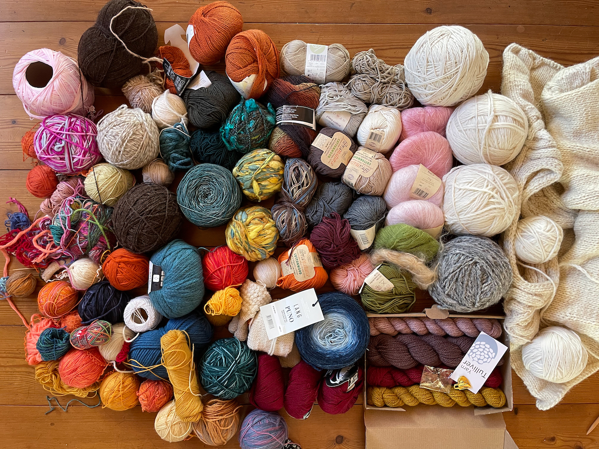 Heut morgen habe ich das direkt zum Anlass genommen und mein Jahreswechselritual des Stashwiegens begangen. Einmal alle Wollvorräte wiegen und sichten. In den nächsten Tagen werde ich meine Vorräte noch einmal durchgehen und einige Wollknäule aussortieren, die ich schon lange nicht nutze oder deren Farben oder Qualitäten nicht zu meinen Vorlieben und Strickgewohnheiten passen. Und entscheiden, was ich aus der angefangenen Strickjacke machen werde, die schon einige Jahre hier rumliegt.