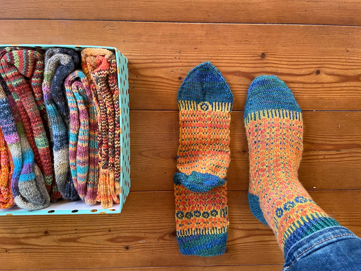 Währenddessen habe ich mein letztes Sockenpaar für dieses Jahr fertig gestrickt. Das wollte ich unbedingt noch schaffen. Nun habe ich insgesamt neun Paar Socken gestrickt, sonst aber auch gar nichts.