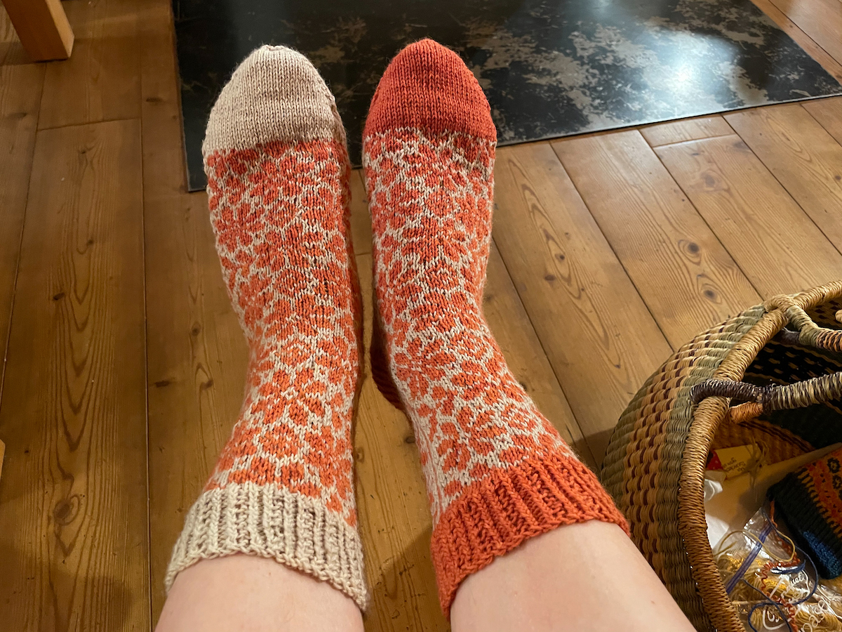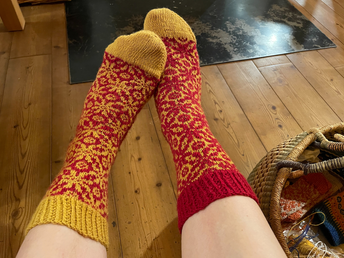 An den Abenden stricke ich nach wie vor Socken. Diese eine Powerflower-Juli-Socke möchte ich unbedingt noch in diesem Jahr fertig stricken. Die Mai und Juni Socken sind nun schon vollständig (wenn auch ein farbliches Stückwerk, damit die Wolle gereicht hat). Wenn die letzte Socke dann fertig ist, habe ich in diesem Jahr 9 Sockenpaare gestrickt. Und sonst nichts anderes.