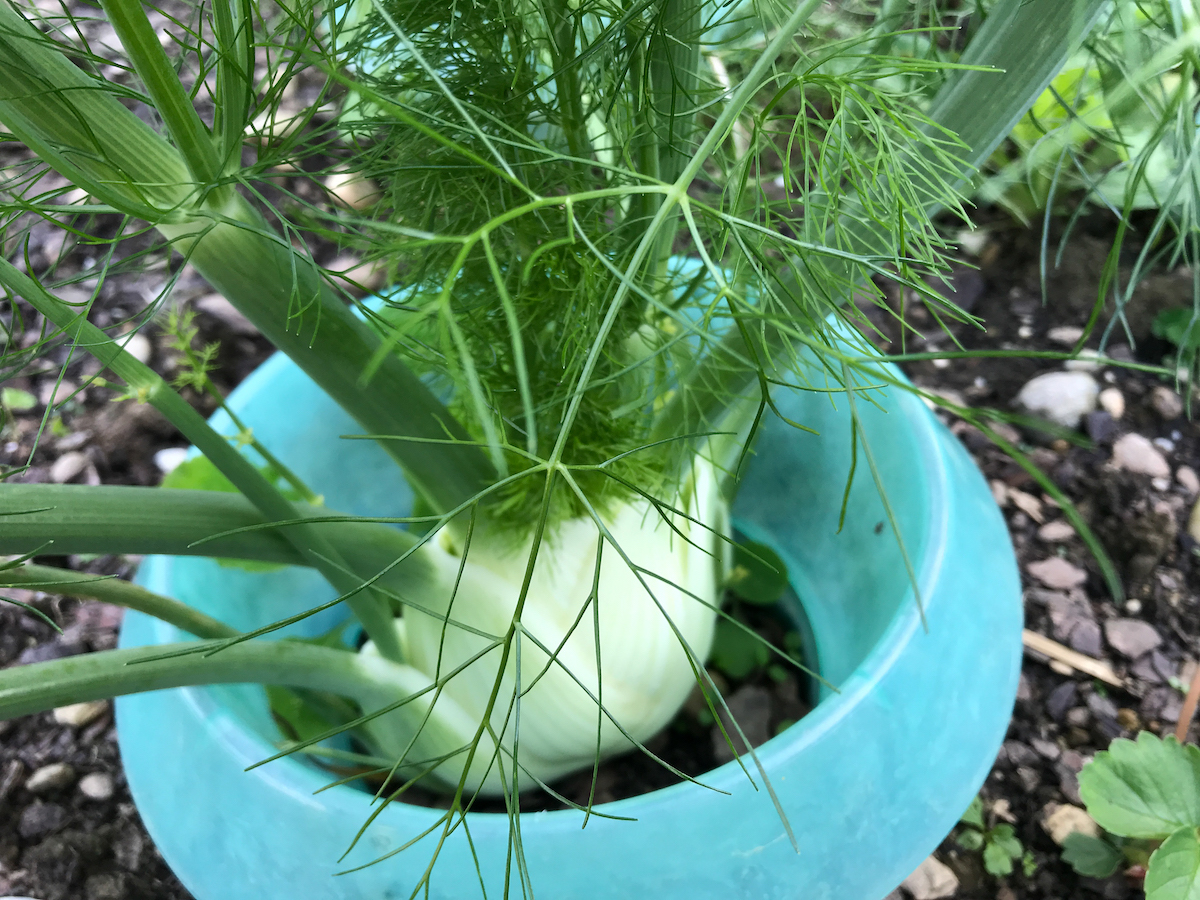 Zum Schluss habe ich noch ein paar Gartenbilder. Meine zwei Fenchelknollen sind dank Schneckenschutz zu einer essbaren Größe herangewachsen und sehen richtig gut aus. Ich habe Rote Beete geerntet (bzw die Tochter in ihrem Hochbeet) und einen Brokkoli entdeckt. Wir haben einige solcher Miniaturen im Garten: Kürbis, Aubgerine, Artischocken. Aber die Freude ist größer!