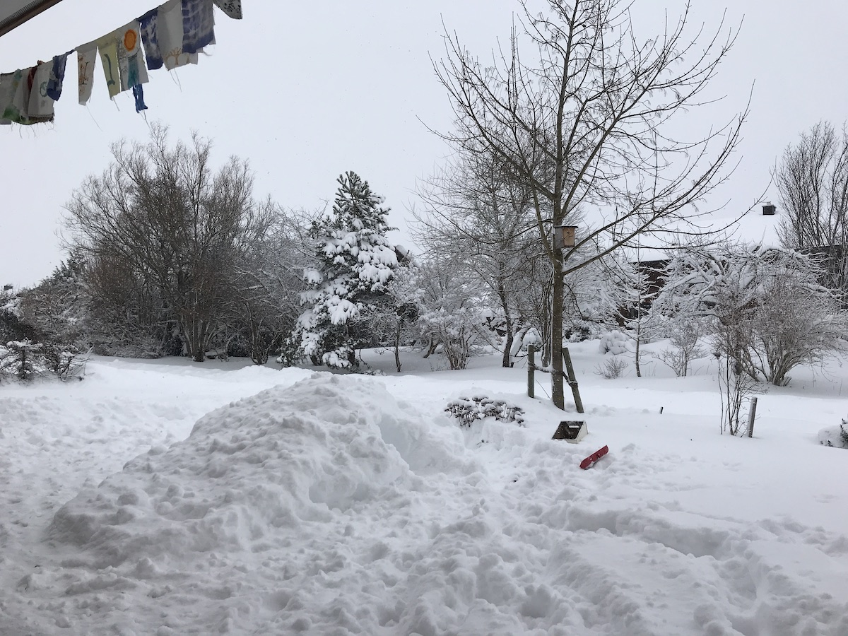 Schnee, vorallem in solchen Mengen, verlangsamt das Leben. Da ist nur wichtig, frisches Holz rein zu holen und das Feuer zu schüren. Da will ich nix draussen besorgen müssen. Man kommt ja eh nicht weit. Der Verkehr liegt lahm, das Internet ist gefühlt auch langsamer, die Geräusche sind gedämpft. Da wird es ganz analog. Anke Gröner schrieb heut morgen auf Twitter: