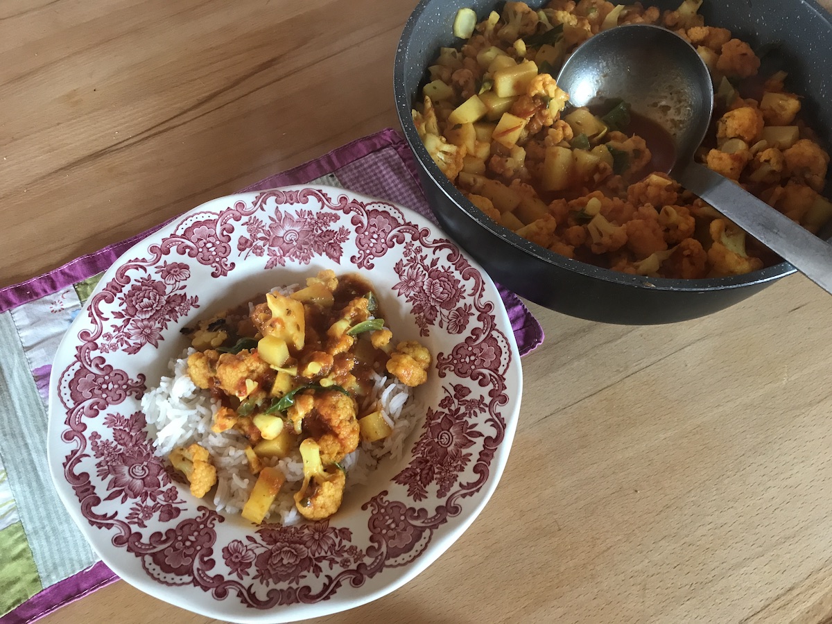 Die letzten Tage sind wie im Flug vergangen. Ich stecke in viel Arbeit, sodass ich sogar die Wäsche vernachlässigt habe. Nach huch! Was bin ich froh über unseren Speiseplan. So muss ich mir keine Gedanken darüber machen, was wir kochen werden. Wir haben die Tage dennoch etwas herumgeschoben, weil sich die Dinge anders ergaben. Heute hatten wir Blumenkohlcurry und Reis auf dem Tisch. Hm, das war gut. Das ist eines der Lieblingsgerichte des Wolfes. Und irgendwann gönne ich mir wirklich hübsche Teller!