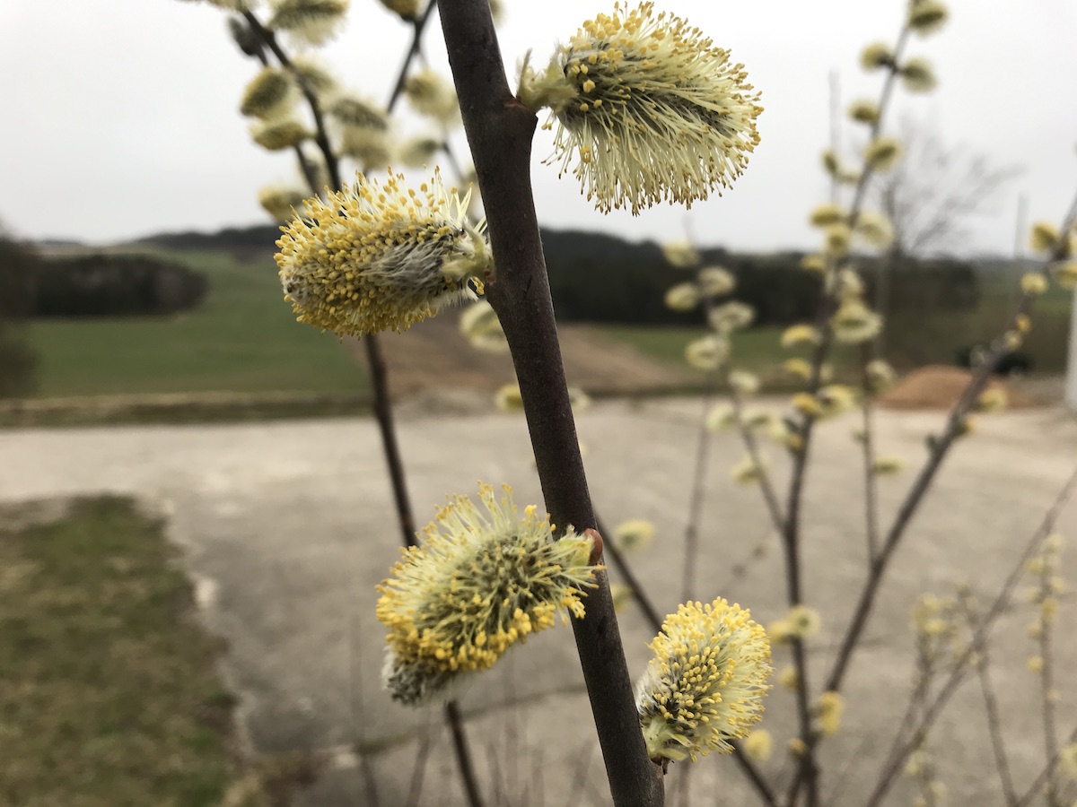 Zu den Weidenkätzchen fällt mir immer ein, wie sehr wir früher ermahnt wurden, dass die Weidenkätzchen erste Bienennahrung im Frühling sind und deshalb nicht abgeschnitten werden dürfen. Das Weidenkätzen war irgendwie heilig. Und nun sehe ich hier, wie Bäume beschnitten und rausgerissen werden, um die Natur “zu gestalten”. Da sind Weidenkätzchen in voller Blüte dabei. Mir schmerzt das Herz. Warum tut man das? Denkt niemand an die Bienen?
