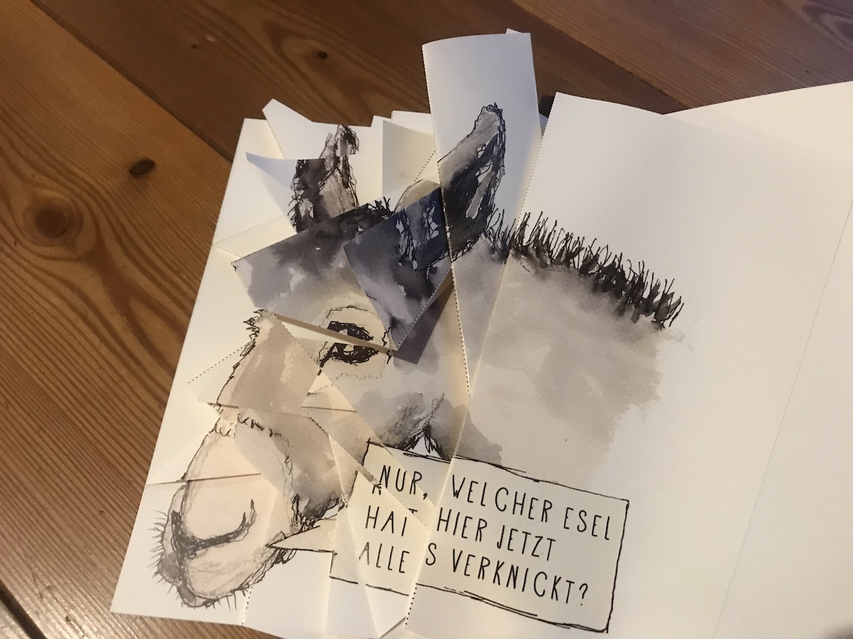 In der Post war auch ein kleines Büchlein* (Buch7), indem man aufgefordert wurde, Eselohren in die Seiten zu knicken. Ich hatte große Freude, das zu machen und fand es nicht nur lustig, sondern auch ziemlich genial. Wer sich sowas einfallen lässt!