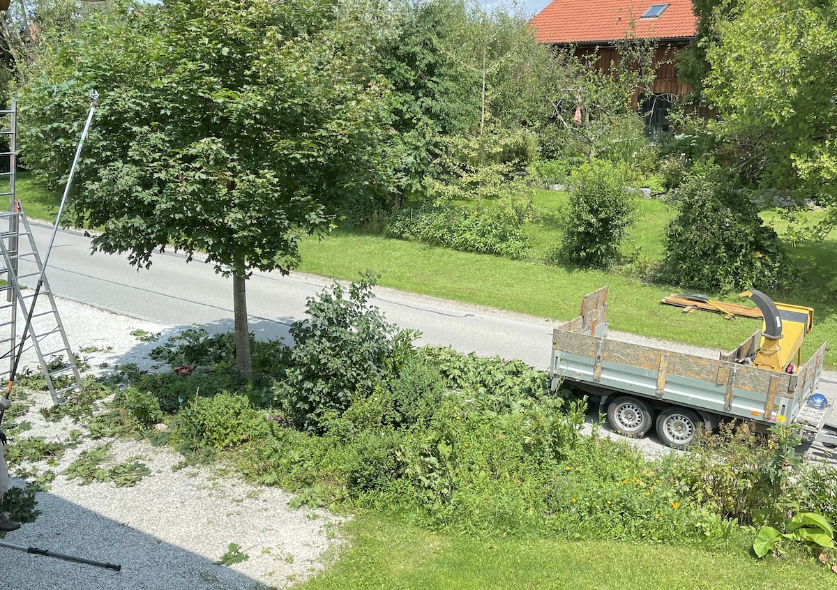 Tagsüber war der Baumpfleger da und hat sich um unsere beiden Bäume an der Strasse gekümmert. Die mussten etwas zur Verkehrssicherheit gestutzt werden und haben ausserdem einen Korrekturschnitt bekommen, damit sie gut weiter wachsen können. Ich freu mich immer, wenn wenigsten solche Dinge weiter gehen und ich mich um etwas gekümmert habe, was erledigt werden sollte.