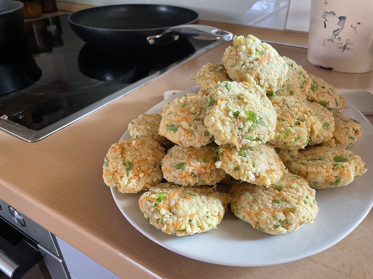 Morgen, am Freitag, sieht der Tag ähnlich voll aus. Am Morgen braten wir 40-60 kleine Bratlinge, die wir dann an der Schule abgeben. Auch Elternarbeitszeit für die Präsentationen der großen Montessoriarbeit. Dann packt der Mann seine Sachen und fährt übers Wochenende nach Aschaffenburg zur Gongausbildung. Ich bringe die Bratlinge zu Schule und helfe beim Aufbau zu großen Montessoriarbeit. Am Nachmittag gehe ich mit dem Wolf zur Abschlussfeier seiner Klasse. Für das Buffet mache ich einen Mais-Bohnen-Salat.