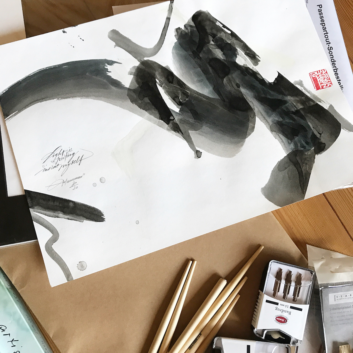 Am Dienstag meine Mutter dann wieder abgereist und ich bin direkt zu meinem Workshop an die Montessori Oberschule nach München gefahren, wo ich einen Kalligrafie-Workshop gegeben habe. Die beiden letzten Wochen vor den Ferien sind immer Projektwochen mit zahlreichen tollen Angeboten wie Theater, Filmprojekte etc. Gleich nach meinem Workshop, der bis 16 Uhr ging, bin ich weiter zu den Posaunenchor-Proben gefahren. Weil ich gut in der Zeit lag, hatte ich vorher noch eine halbe Stunde Verschnaufpause, die ich gemütlich unter einer Linde verbracht habe. Die Proben waren nett. Das Atmen und Spielen tut mir gut. Ich “kann” jetzt schon zwei Töne. Leider haben wir jetzt eine längere Sommerpause, aber Hausaufgaben im Lehrbuch.
