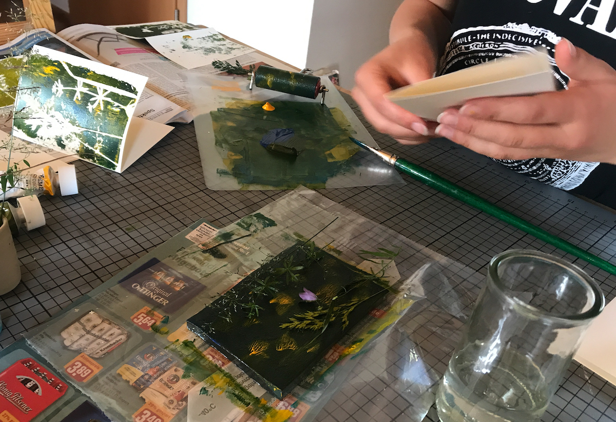 Das Wochenende mit meiner Mutti verging wie im Fluge und war voller schöner Dinge, die wir gemeinsam gemacht haben. Wir waren kreativ und haben genäht und gedruckt, waren beim Boesner ein paar Dinge für meinen Workshop besorgen und Rahmen für ein Bild, was ich mir von Sigrid Artmann gekauft habe. Ausserdem gab es lecker Essen: Stachelbeerkuchen mit Stachelbeeren aus dem Garten, Baba Ganoush und eingelegte Paprika aus Gemüse in der Biokiste und die ersten selbst angebauten und geernteten Kartoffeln. Ein tolles Gefühl!