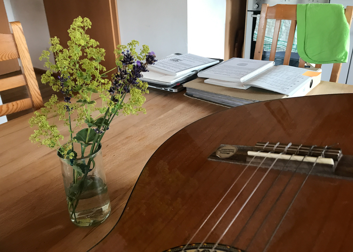 Pause von dem Terminreigen hatte ich erst heute. Gestern habe ich noch Zeit an der Schule verbracht, um bei der Pausenaufsicht auszuhelfen. Danach habe ich mich mit einer Freundin getroffen. Sie hat für uns gekocht und danach haben wir gemeinsam für die Schulkinderverabschiedung im Kindergarten zwei neue Lieder geprobt (sie auf dem Cello, ich auf der Gitarre). Das ging erstaunlich gut (ich spiele ca nur 2x im Jahr Gitarre oder so) und hat richtig Spaß gemacht. Den Rest des Tages bin ich nur durch den Garten flaniert, habe Erbsen geerntet und Unkraut gerupft.