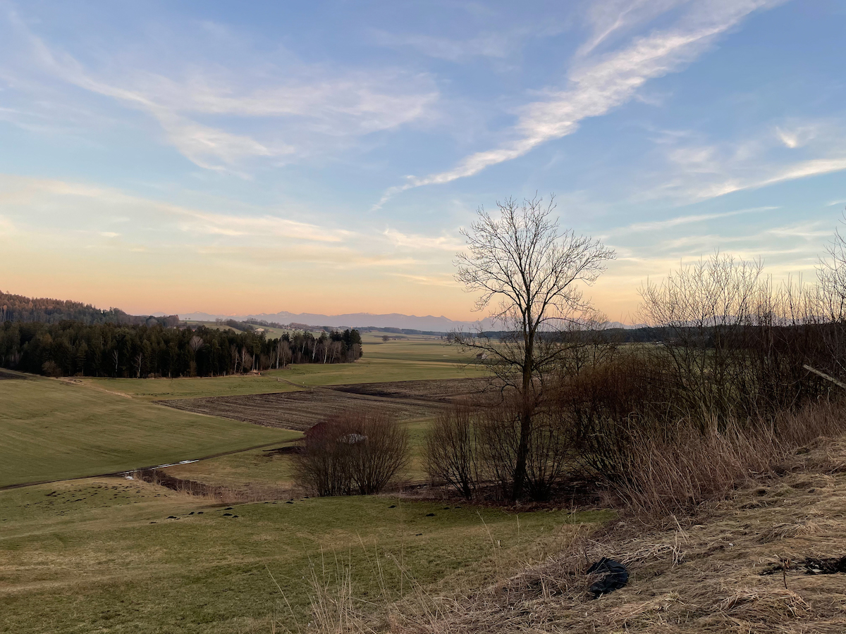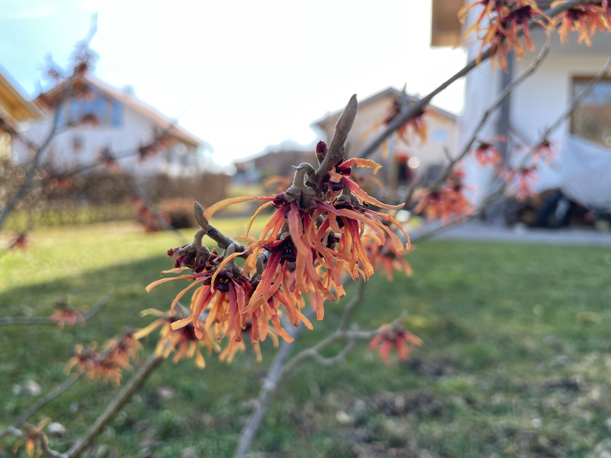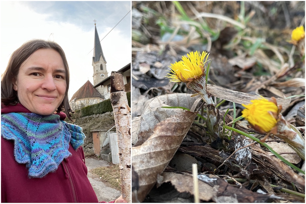Ich überlege, ob ich nach so viel Draussensein im Garten noch Spazieren will. Entscheide mich aber gegen 17 Uhr doch dafür. Der Sterngucker begleitet mich auf dem Skateboard. Es wird nur eine kleine Runde, aber ich entdecke blühenden Hufflattich und sammle Birkenrinden.
