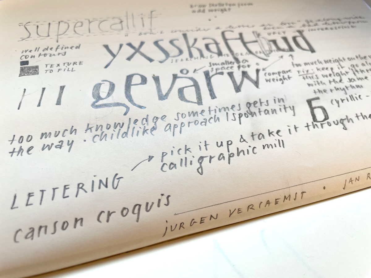 Ein bisschen an den Socken weitergestrickt, gleich nach dem Aufstehen und immer mal wieder im Laufe des Tages. Ich starte den Hände-Zeichnen-Kurs von Nadine Roßa, merke aber, dass ich mir dafür mehr Zeit nehmen möchte. Stattdessen schaue ich endlich die Aufzeichnungen des Zoomcalls von Jurgen Vercaemst zur Jan Rossey Schrift an und mache mir Notizen. Am Abend zeichne ich noch ein Portrait in mein Moleskine.