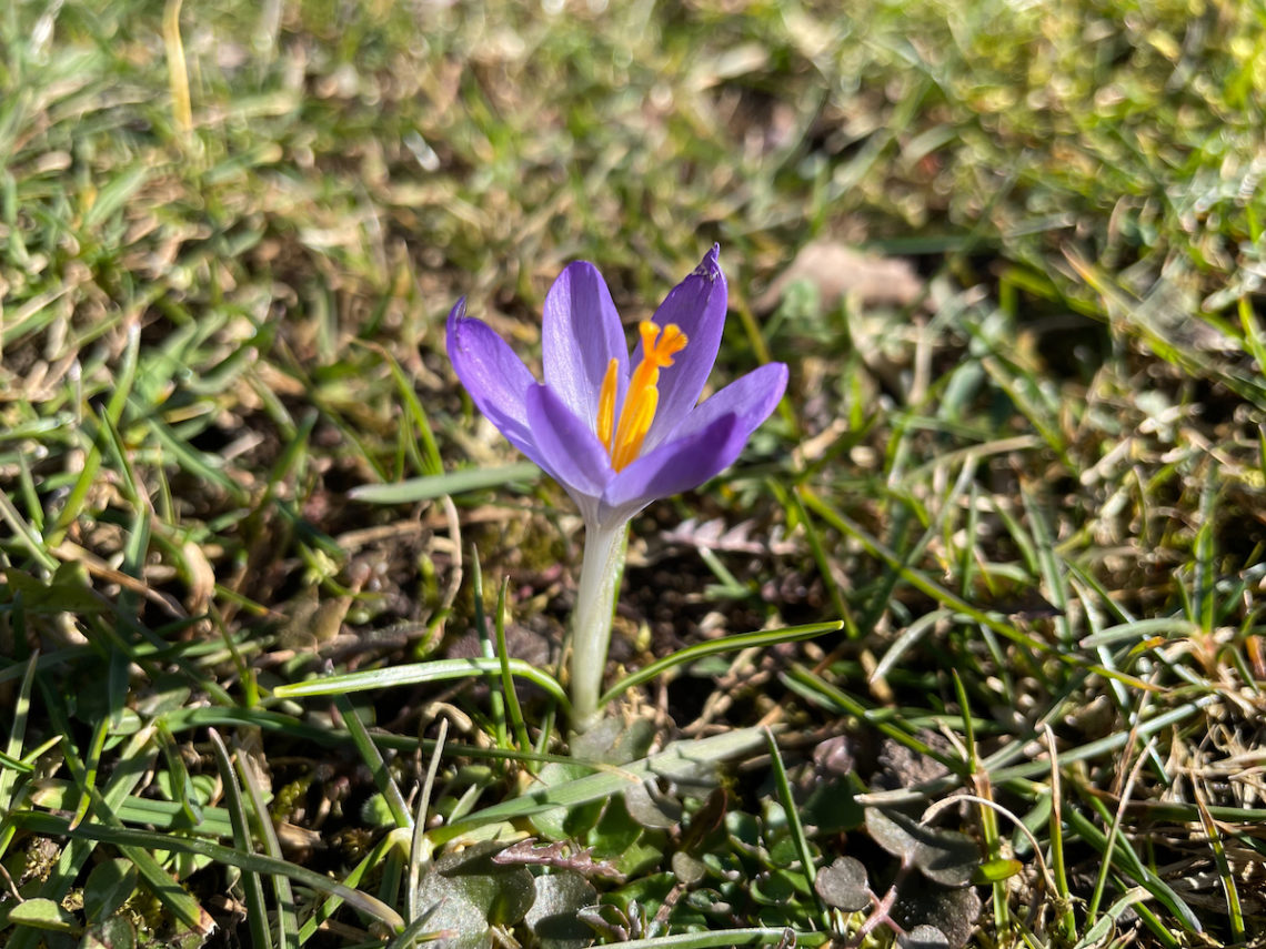 Nach dem Mittagessen übe ich mit dem Wolf ein bisschen Mathe. Wir schauen uns Division von Dezimalzahlen an. Dann räumen die Jungs die Gartenmöbel auf die Terrasse und chillen in der Sonne. Ich entdecke den ersten Krokus in der Wiese.