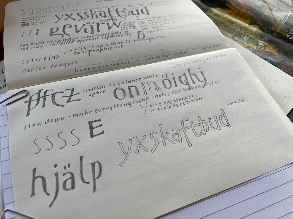 • Ich schaue mir den zwiten Teil des Kurses von Jurgen Vercaemst zu Jan Rossey-Lettering an. Von den zwei Stunden schaffe ich vielleicht 30 min. Den Rest hebe ich mir für diese Woche auf. Der Kurs ist nicht mehr lange verfügbar.