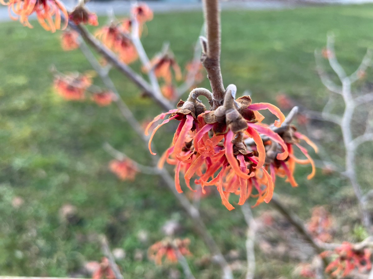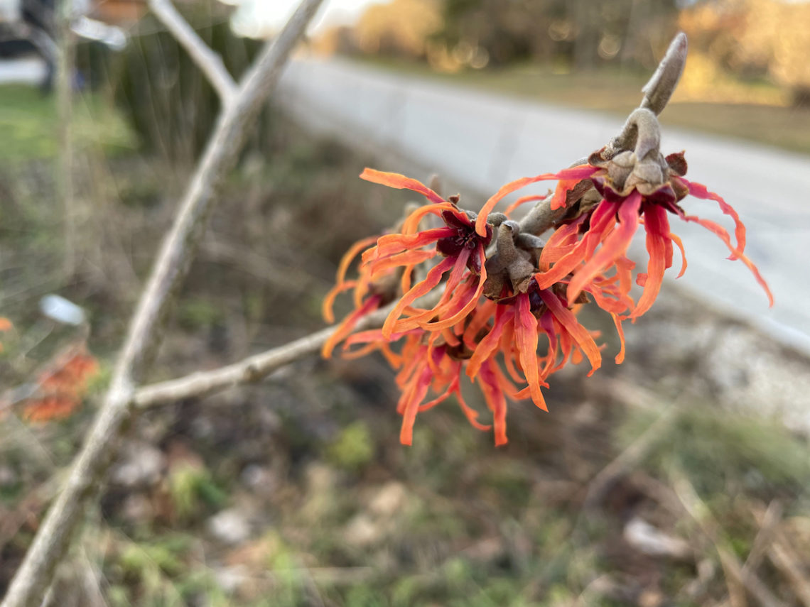 - Die Spaziergänge mit dem Mann. Schafe auf den Wiesen, Spechte in den Bäumen, die blühende Hamamelis, der Humor des Mannes.
