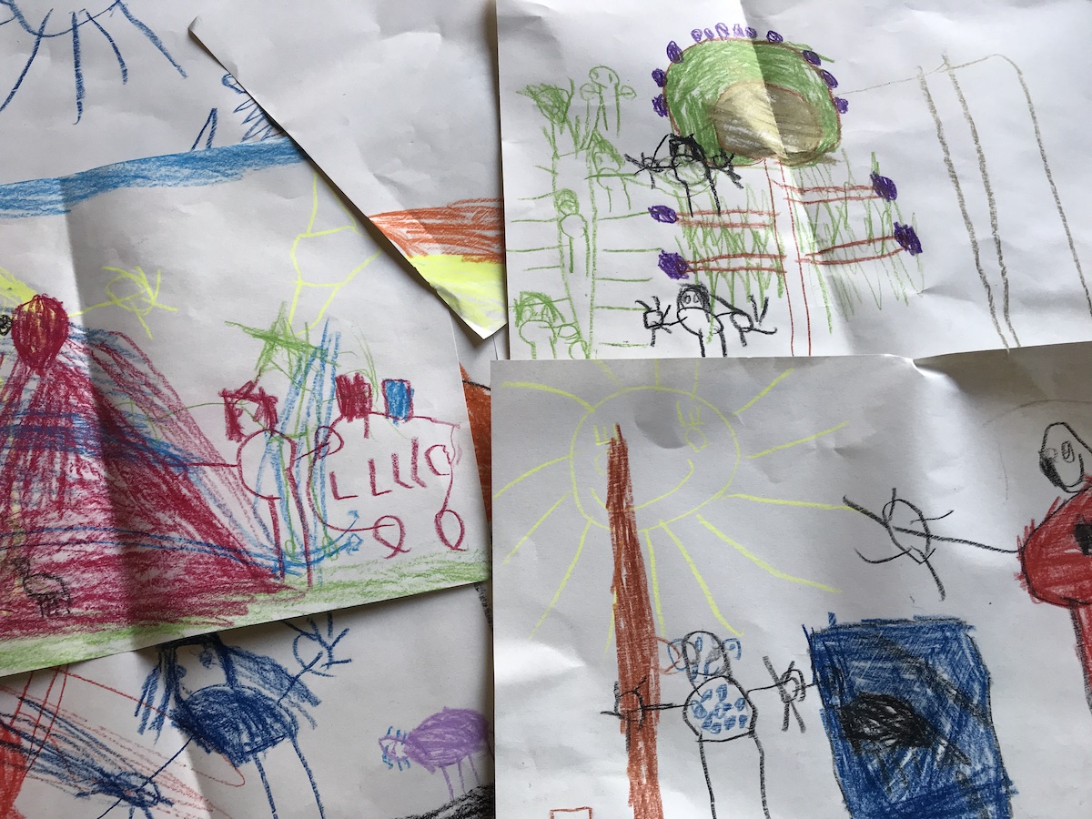 Im Kindergarten können die Kinder jeden Tag nach draussen gehen. Neulich habe ich gesehen, dass ein Tisch mit Malsachen im Freien steht. Nun bringt der Sterngucker jeden Tag begeistert gemalte Bilder Bilder mit nach Hause. Er hat die Möglichkeit zu zeichnen jeden Tag, aber irgendwie scheint so ein Umgebungswechsel die kreativen Säfte nochmal neu zum Fliessen zu bringen. Vielleicht sollten wir uns daran eine kleine Scheibe abschneiden? Öfter mal den Trott verlassen und raus aus der Box denken? Ich hab den Impuls gleich mal in meinem Kallimagie-Newsletter weitergegeben.