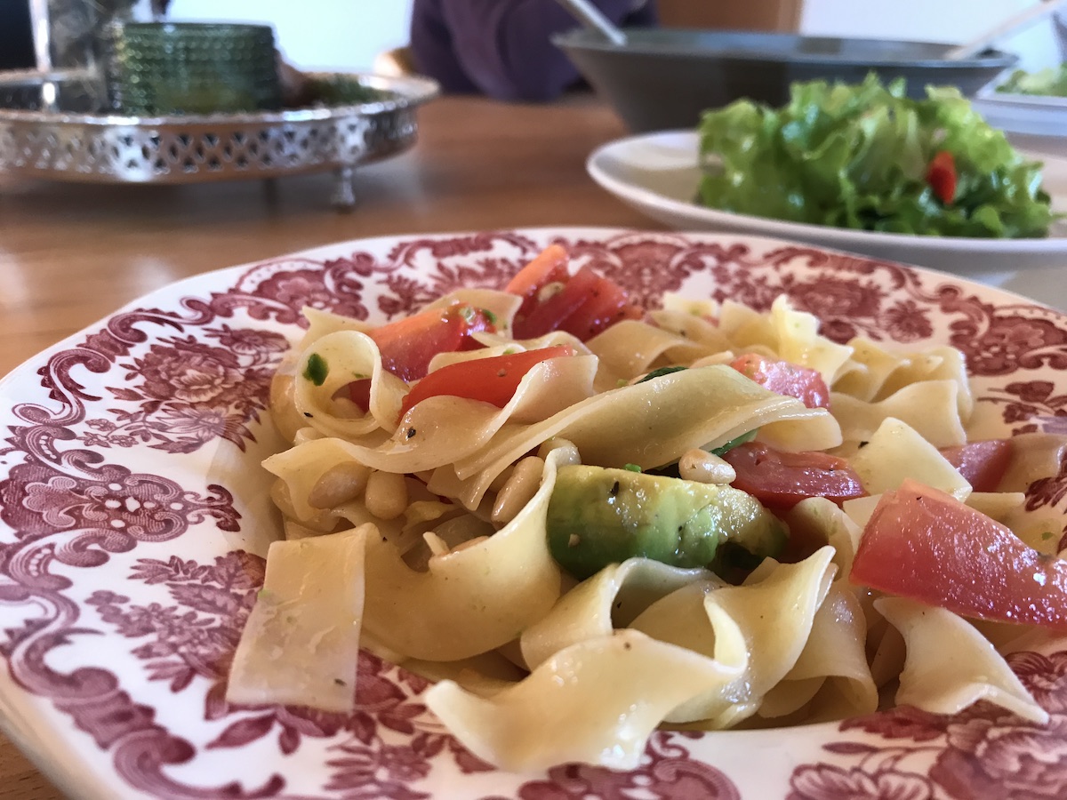 Zum Mittagessen gab es Tagliatelle mit Avocado, frischen Eiertomaten aus der Biokiste und Pinienkernen. Dazu einen grünen Salat mit Paprikawürfeln. Ich bin gerade wieder motiviert zu kochen und meine Familie (und mich!) zu nähren. Zum Abendessen habe ich, wie auch gestern schon, eine Quinoa Bowl gegessen. Das heisst: ich habe mir Quinoa ausreichend für mehrere Tage gekocht. Für eine Mahlzeit nehme ich mir dann eine Portion und pimpe das ganze mit Frischkram aller Art. Heute war das Babyspinat, Tomate, Zucchini, Artischoken (aus der Dose) und Cashewkerne.
