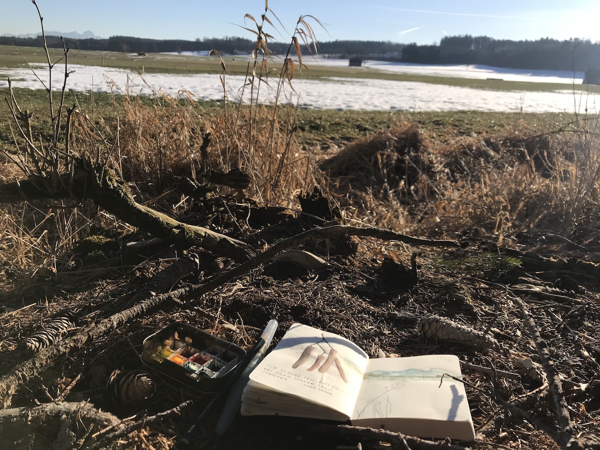 Auch heute habe ich mir einen langen Spaziergang und viel Zeit in der Sonne gegönnt. Ich habe ein bisschen draussen gezeichnet und in mich rein gespürt. Draussen sein ist so heilsam. Ich bin dankbar für diese neue Routine. Auf dem Rückweg war mir ganz übermütig zumute. ich hab die Schuhe ausgezogen und bin durch den Schnee getanzt.