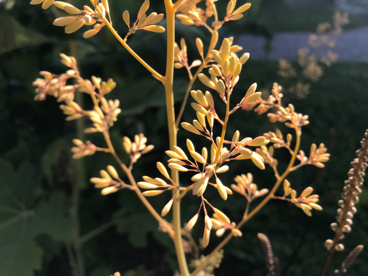 Während der Ausgangsbeschränkungen im Frühjahr hat sich die Tochter ein Hochbeet aus Palletten gebaut. Dort grünt und wuchter es jetzt auch üppig. Die gute Erde und der Pferdemist sind wohl besserer Boden als unsere olle lehmige Gartenerde. Das freut mich sehr.