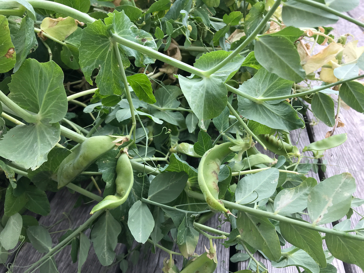 Von den Erbsen habe ich eine leckere Suppe gekocht, viele direkt vernascht und einige eingefroren. Nun konnte ich die Pflanzen rausreissen und das Beet für neue Pflanzen herrichten. Von Anfang an mit Schneckenkragen. Ich habe zwei verschiedene Sorten Erbsen gesät. Die üppiger, Ambassador, fand ich zum Naschen nicht so lecker. Da hat mir die andere Sorte (Sweet Horizon)