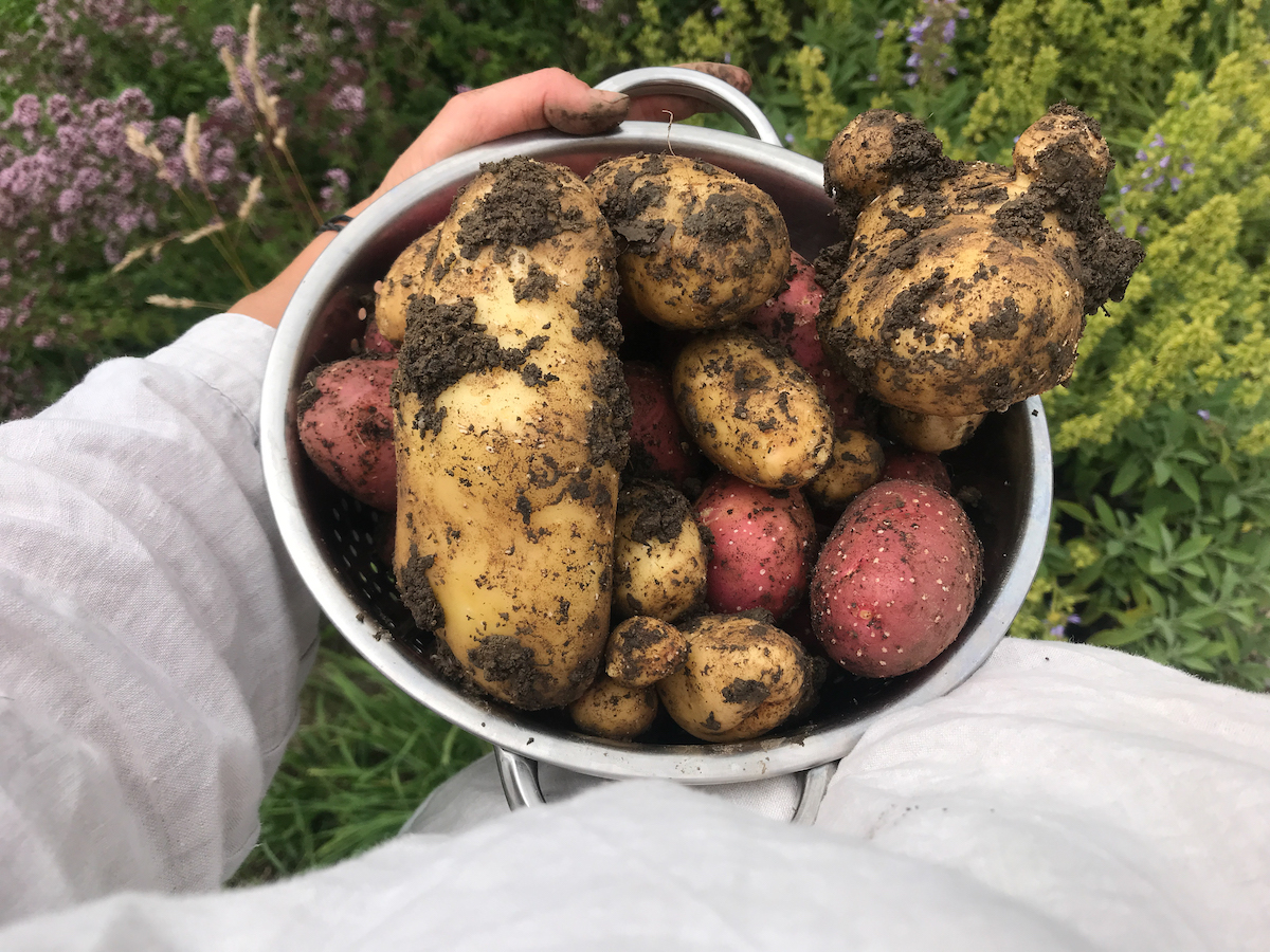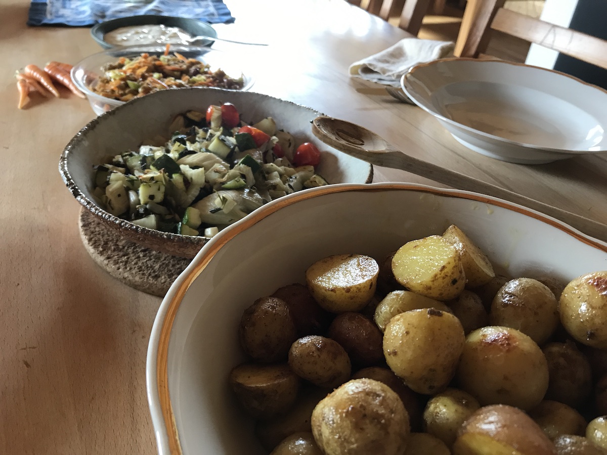 Besonders glücklich macht mich aber die Kartoffelernte. So große Kartoffeln trotz Schneckenplage und Kartoffelkäfer. Und das ist erst ein Teil! Da stehen noch viele Pflanzen zum Ernten im Garten. So kleine Dinge machen mich sehr glücklich! Die kleinen Minikartoffeln gab es heute Mittag als Ofenkartoffeln vom Blech. Für mich mit Zuchini-Fenchelgemüse und selbstgemachtem probiotischem Joghurt, für die Jungs mit Ketchup.