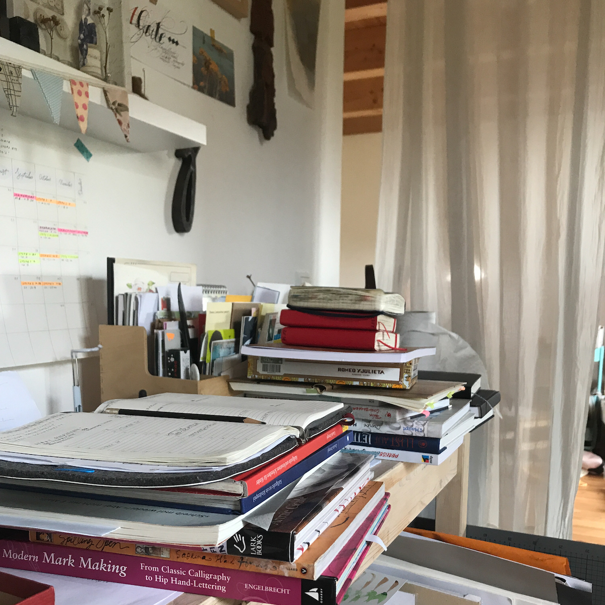 Weil ich aber einen klaren Plan hatte, was unbedingt heut noch passieren musste, habe ich den Vormittag ziemlich produktiv und diszipliniert arbeitend verbracht. Ich habe meinen Newsletter verschickt und den Onlinekurs an den Start gebracht. Da war noch einiges an Technikkram im Hintergrund zu erledigen, vorallem weil heute am Starttag noch neun weitere Kursanmeldungen hatte. Ich bin die ganze Zeit ganz begeistert, dass so viele Lust haben, mit mir Schriftenteppiche zu schreiben! Neben meiner Müdigkeit bin ich also richtig beschwingt und freudig im Herzen.