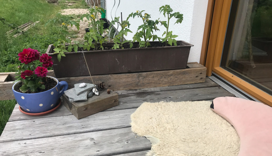 Ich hab mir dann einen kleinen Still-Werd-Ort auf meiner Büroterrasse eingerichtet und mich dort hingesetzt und nichts getan. Die Blumen angeschaut, mein Sitzen erspürt, meinem Atem gelauscht und gebetet. Und tatsächlich bin ich ruhig geworden, der Sturm hat sich gelegt. Mit dem Gewitter draussen hat sich auch mein Inneres geklärt. Noch nicht grundsätzlich, aber für heute vorerst gut.