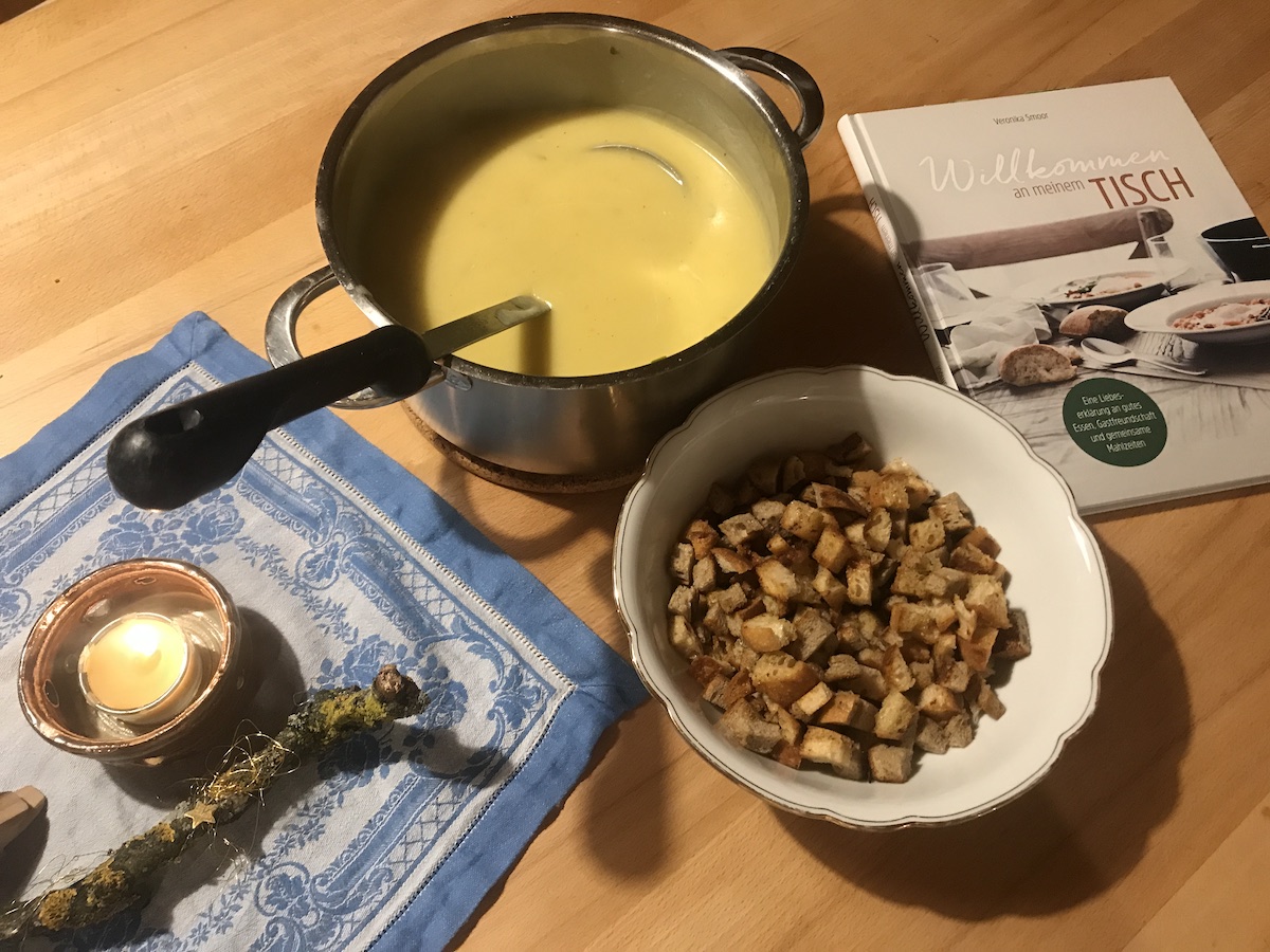 Heut abend habe ich das Buch Willkommen an meinem Tisch (Links zum Blogpost) von Veronika Smoor zu Ende gelesen (hach, ich mag so sehr, wie sie schreibt!) und spontan Lust auf Kartoffelsuppe bekommen. Die gab es zum Abendessen. Die Kinder tobten noch eine Weile durch die Bude, dann brachte ich die Bande ins Bett. der Mann hat Donnerstag immer seinen Auswärtsabendarbeitstermin. Ich hab dann noch den Grundeinkommen-Podcast gehört, der sehr interessanten Gedanken nachging. Am 19.Februar ist die nächste Grundeinkommen Verlosung. Hast du schon ein Los?