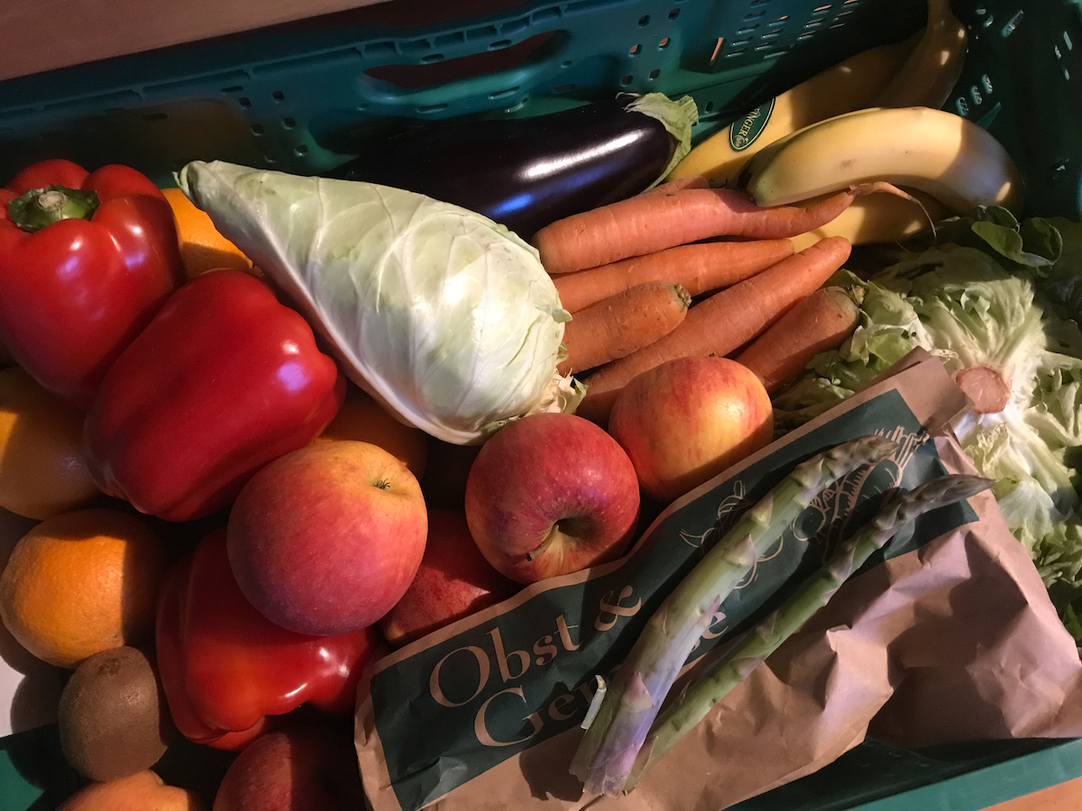 Zurück zu Hause dusche ich, räume die Gemüsekiste ein, die inzwischen geliefert wurde (juhu! Spargel. Wir können morgen Spargelrissotto essen. Der steht schon so lange auf unserem Speiseplan mit dem Vermerk “wenn es Spargel gibt”). Dann bringe ich den Sterngucker ins Bett und schreibe noch ein bisschen mit einer Freundin. Wir schicken uns Sprachnachrichten, das macht mich sehr beschwingt, ihre Stimme zu hören.