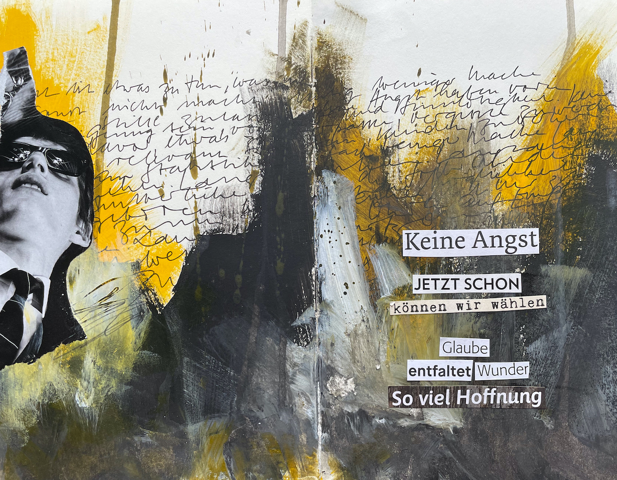 Gestern wurde es spät. Meine Bettzeit ist mir heilig. Ich gehe immer gegen 22 Uhr ins Bett. Was war es also, was mich gestern noch bis nach Mitternacht wach gehalten hat? Ich habe mich für einen zehn Monate langen Kurs bei Sabrina Ward-Harrison entschieden. Gestern war die Welcome-Session. Da wollte ich unbedingt dabei sein, obwohl es auch eine Aufzeichnung geben wird. Wegen der Zeitverschiebung wurde es so spät. Aber ich habe es nicht bereut. Zusammen mit 50 anderen Frauen (und einem Mann) gab es einen so warmherzigen und jetzt schon inspirierenden Austausch. Lauter Künstlerinnen, die ihre Buchidee verwirklichen und tief in ihr eigenen Erleben eintauchen wollen. Farbe, Poesie, Spiel und Entfaltungsprozesse. Ich bin wirklich gespannt auf die Monate vor mir. Gleich zu beginn gab es mehrere Schreibsessions, Austauschrunden und viel Nähe trotz Entfernung, Fremdsprache und unbekannter Menschen.