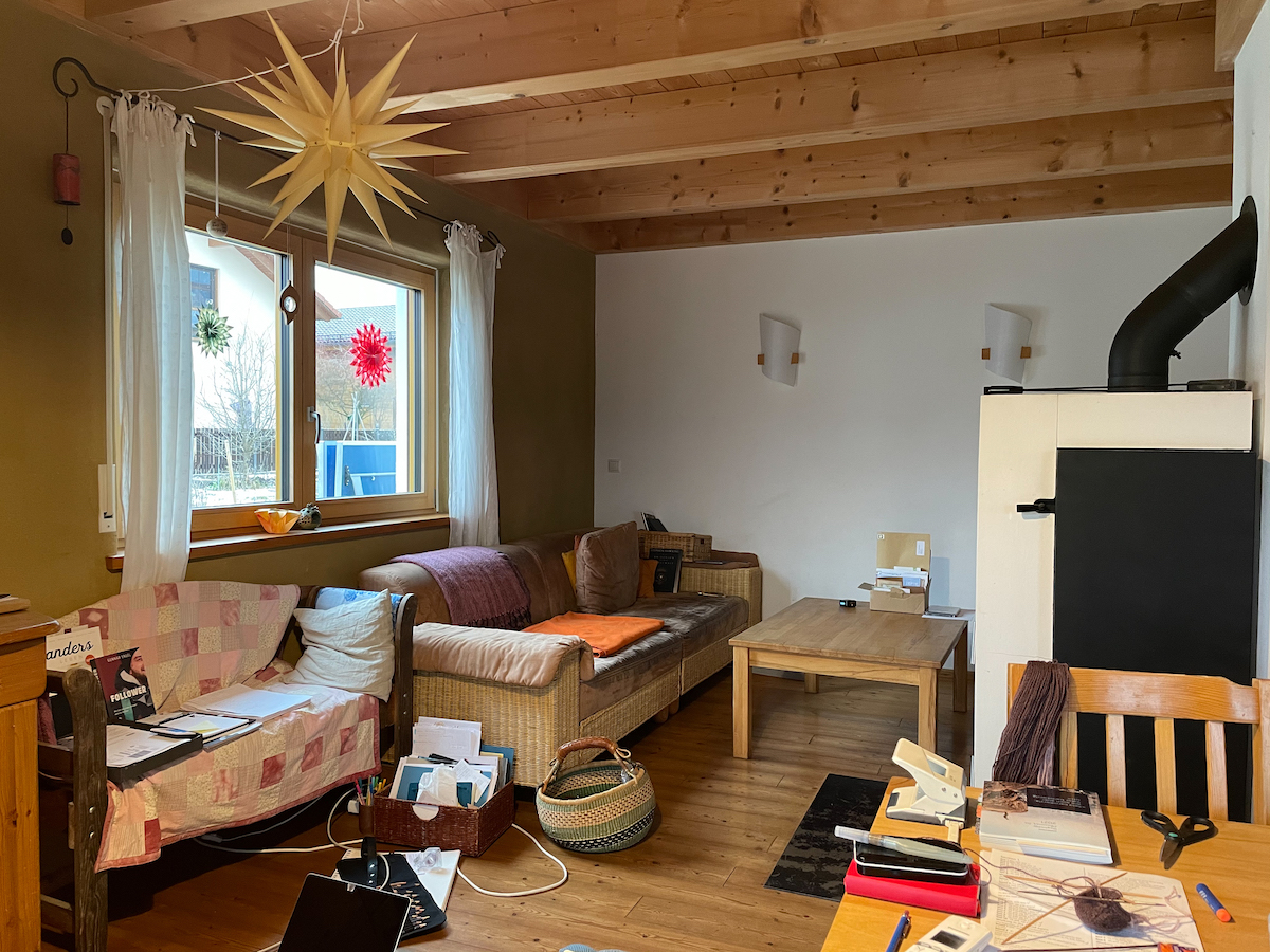 Seit Tagen schon liegt ein angefangener Bericht über unsere ersten Januartage in meinem Entwurfsordner. Mit Bildern, Stichpunkten, aber keinen Worten für diese Tage. Hier hängen Schneehosen über dem Stuhl vor dem Feuer. Darunter liegen alte Handtücher, um das Tropfwasser aufzufangen. Überall liegen Haufen mit irgendwas herum: Weihnachtsdeko, die ich sortieren und verräumen will, Wäsche, die gewaschen und verräumt werden muss, Geschirr zum Abspülen, Weihnachtsgeschenke, Spiele, Notizen und Papierstapel. Es ist wuselig, laut und bunt.
