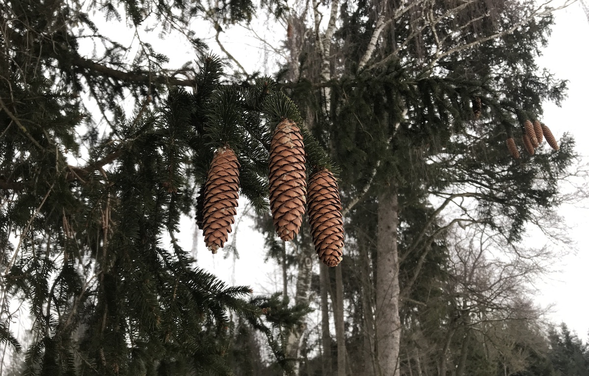 Auch einen Mittagsschlaf habe ich mir gegönnt. Kurz auf die Couch gelegt und weggeschlafen, während der Mann dem Sterngucker Pfannkuchen buk. Nach dem Schläfchen schlich ich mich aus dem Haus, die Familie war schön mit allerlei Dingen beschäftigt, und ging eine Runde Spazieren. Im Wald ist schon so ein Vogelgezwitscher. Ich mag es sehr, da mittendrin zu sein, Fuchsspuren im Schnee zu entdecken oder angeknabberte Zapfen am Boden zu finden.