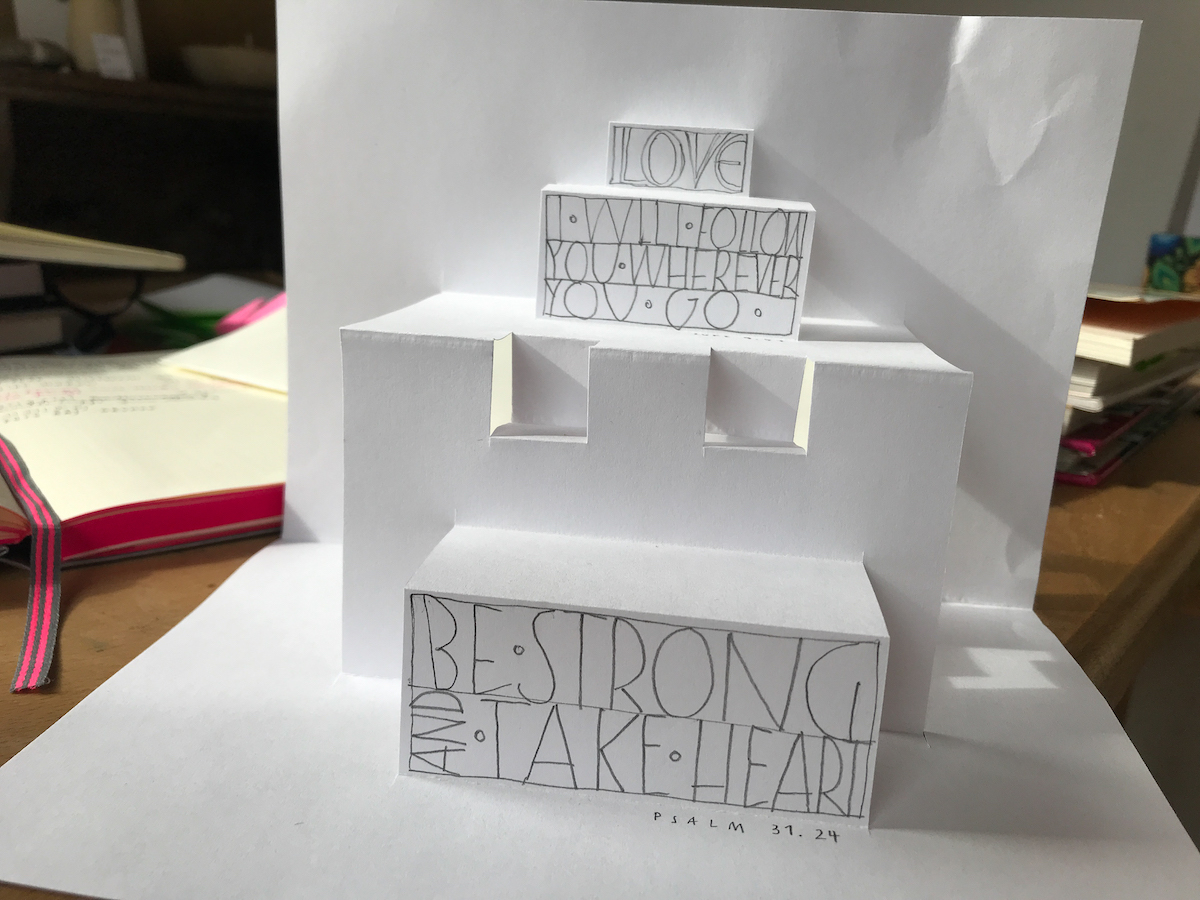 Gestaltet: kleine Schriftenteppiche auf meiner Pop-Up-Karte, eine Collage