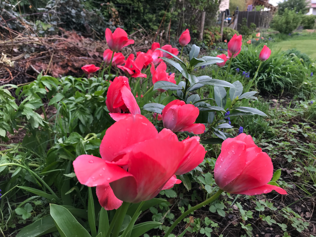 Draussen hat es endlich geregnet. Nun leuchtet alles in herrlich saftigem Grün. Es ist erstaunlich, wie aus der grauen staubigen Erde sattes schwarz geworden ist, wie die Pflanzen plötzlich einen Wachstumsschub hinlegen. Sie sind in dem einen tag gefühlt mehr gewachsen als in den letzten drei Wochen. Ich erfreue mich an den Tulpen, manche davon Duften herrlich, dem Flieder, der gerade aufblüht und den Maiglöckchen, die ich mir letztes Jahr beim Arbeitstag aus dem Kindergarten mitgenommen habe. Auch mein Weissdorn, auf dessen Blüte ich schon sehnsüchtig warte, öffnet die ersten Knospen. So schön!