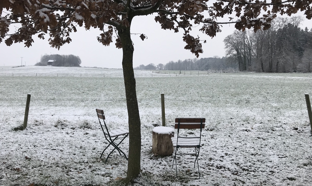 Gerade bin ich sehr verliebt in die Novemberfarben. Morgennebel, Tagesdunst, zwischendrin klare Himmel mit Bergsicht. Im Nebelgrau leuchten noch die letzten gelben Birkenblätter und das Rotbraun der Buchen. Das gefällt mir sehr, und ich wünschte, ich könnte die Stimmung irgendwie auf Papier bringen. Caspar David Friedrich konnte sowas glaube ich. Aber der bin ich ja nicht.