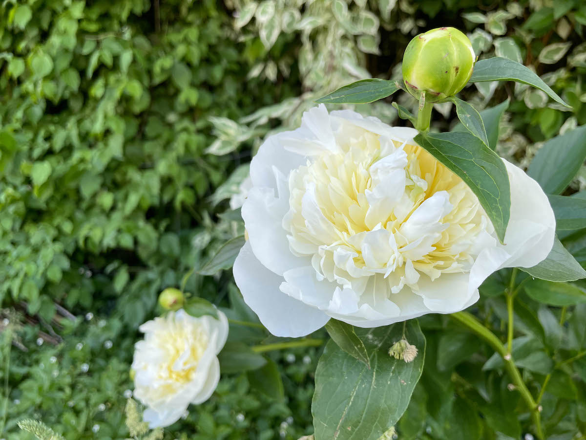 Glücklich machen mich auch die weissen Pfingstrosen im Garten. Das war mal eine sehr mickrige Staude vom Aldi, die jetzt zu einer prächtigen Größe herangewachsen ist. Sie ist meine Lieblingspfingstrose und die letzte von den drei Sorten, die in unserem Garten blühen. Ihr Duft ist wie weiche Wolken, cremig und zart. Ich mag die so gern. Vorhin lag ich direkt neben ihr im Schatten und habe in meinem neuen Buch gelesen, Hungry Hearts. Essays on Courage, Desire and Belonging. Das Buch liest sich schön. Ich mag die persönlichen Geschichten der starken Frauen darin. Und die Ermutigung, die eigenen Geschichten zu erzählen, um uns miteinander zu verbinden und zu heilen.