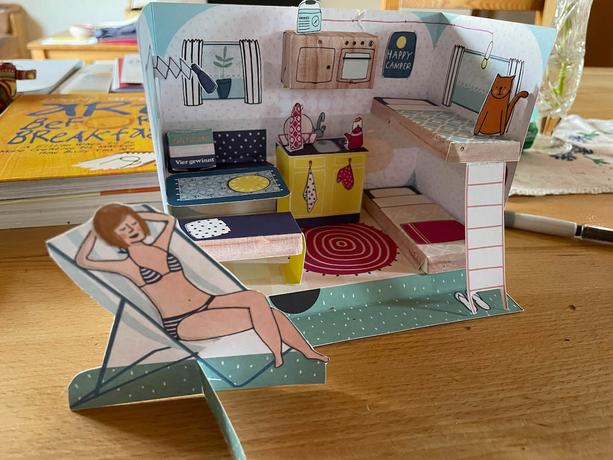 Puh, was ist es warm geworden. Ich möchte am liebsten den ganzen Tag im kühlen Haus verbringen, im Bett liegen, lesen und nichts tun. Das habe ich auch sehr ausgiebig gemacht. Ich habe mir extra einen feinen faulen Samstag eingeplant. Der Mann ist bei seiner Gongausbildung, wir schlumpern uns durch das Wochenende. Ich habe noch die Materialpakete für den Sommerskizzenbuch-Kurs verschickt, der am Montag beginnt. Und einen mediterranen Kartoffel-Bohnen-Salat für die Gongtruppe gemacht. Das Rezept könnte ich hier mal aufschreiben, oder?