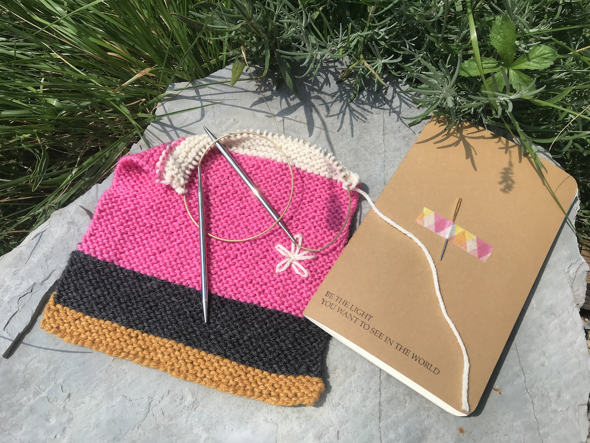 Neulich erreichte mich ein kleines Packerl von Maria aus Berlin. Darin war der angestrickte Compassion-Schal von Caro (kostenlose Anleitung in ihrem Blog) – ein Gemeinschaftsprojekt, was sie auf Reisen geschickt hatte. Sie hatte die ersten Maschen des Schals angestrickt und ein kleines Begleitheft beigelegt. Nun reist der Schalt eine Liste von Mitstrickerinnen ab und jede darf ihre persönliche Strickhandschrift beitragen – so es dir bei kraus-rechts gibt. Ich mag solche Projekte. Maria hatte mir eine große rosafarbene Fläche hinterlassen, die ich mit einem schmalen Streifen weiss eingefangen und einem passenden zarten Stickblümchen durchbrochen habe. Der Schal ist nun mit einem kleinen Goodie zur nächsten Strickerin weitergereist. ich bin gespannt, wie er sich weiter entwickelt.