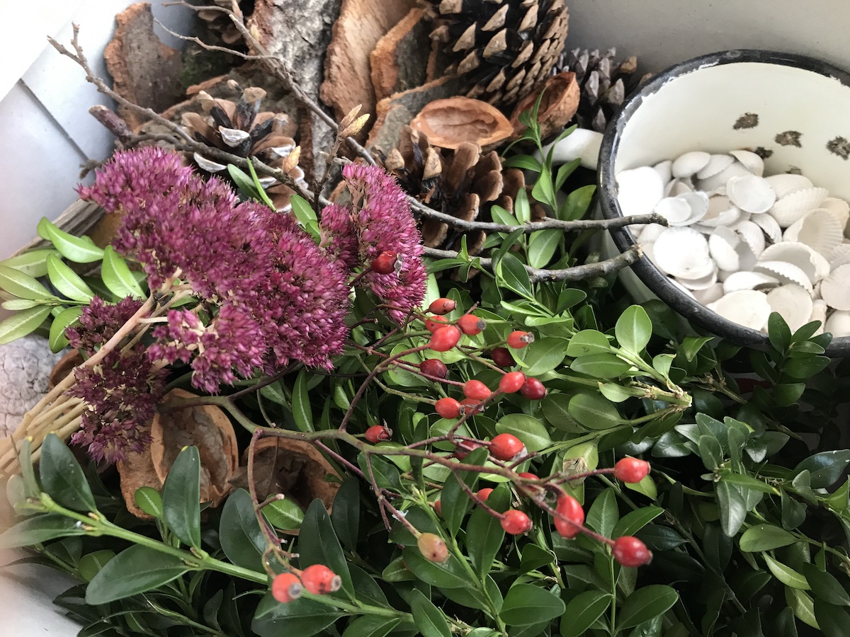 Am Donnerstag will ich mit den Kindern in der Schule Moosgärtlein basteln. Dafür sammle ich schon kleien Schätze, Zweige und Material zum Gestalten.