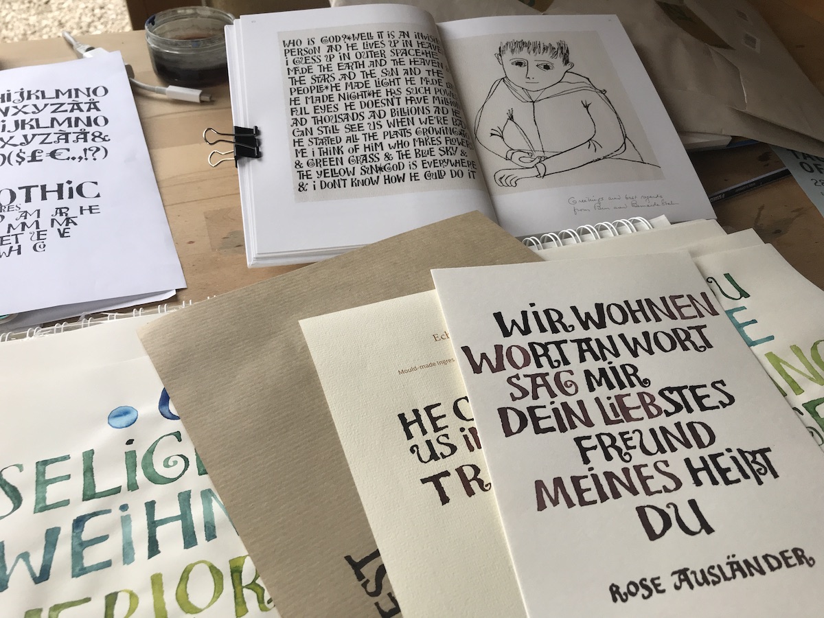Ausserdem habe ich einen Adventskalender für den Wolf gefunden und ein Buch über künstlerische Weihnachtspost gefunden. Das hat mich besonders gefreut. Daheim war ich freudig überrascht, dass eine Karte von Ben Shan drin ist – ein Künstler, von dem ich erst im Frühjahr über einen Onlinekurs gehört habe und dessen Lettering ich diese Woche für mich als Kreativthema habe.